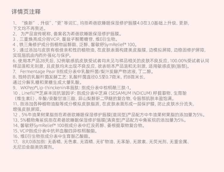 泰国希蓓欧CIBIO'2睡眠唇膜4.0升级款 滋润/清爽唇部补水保湿