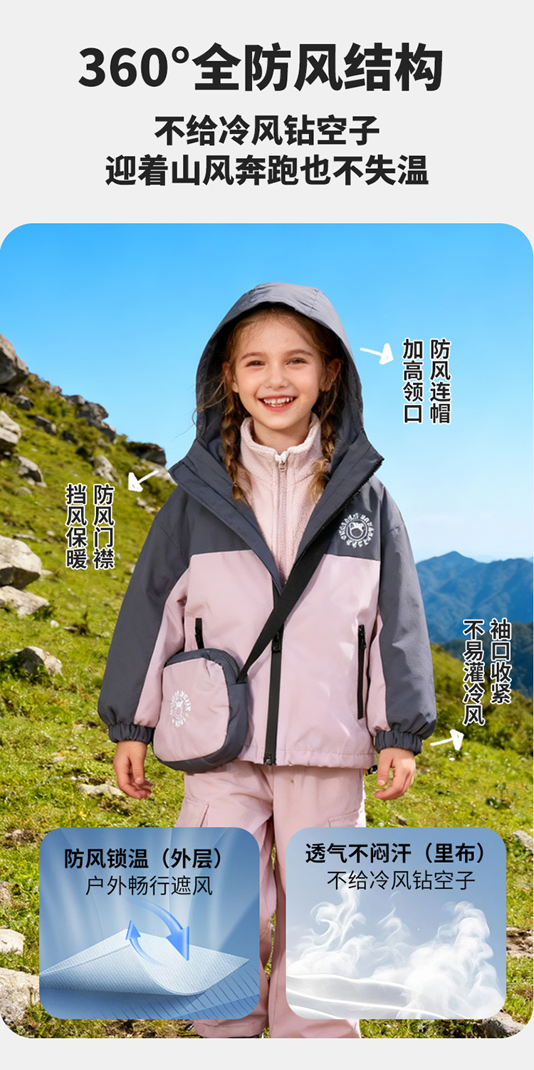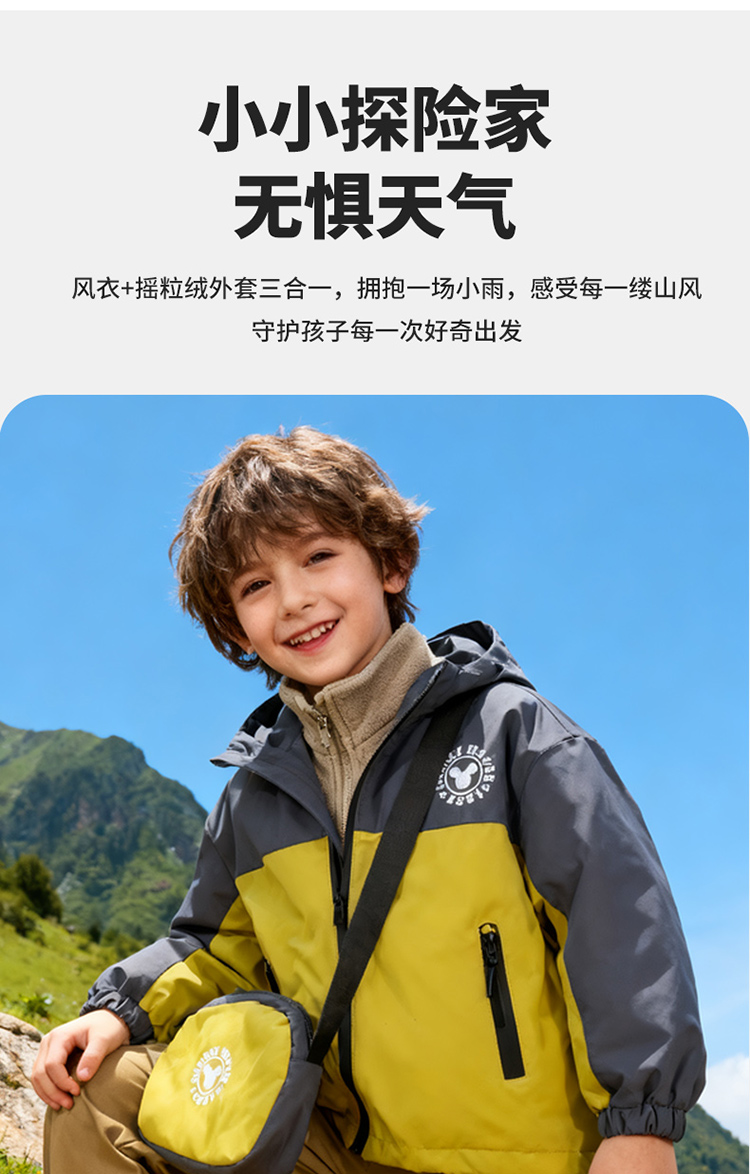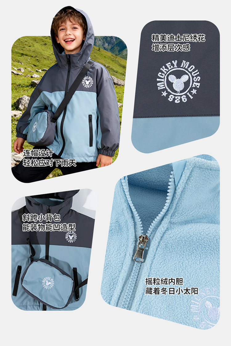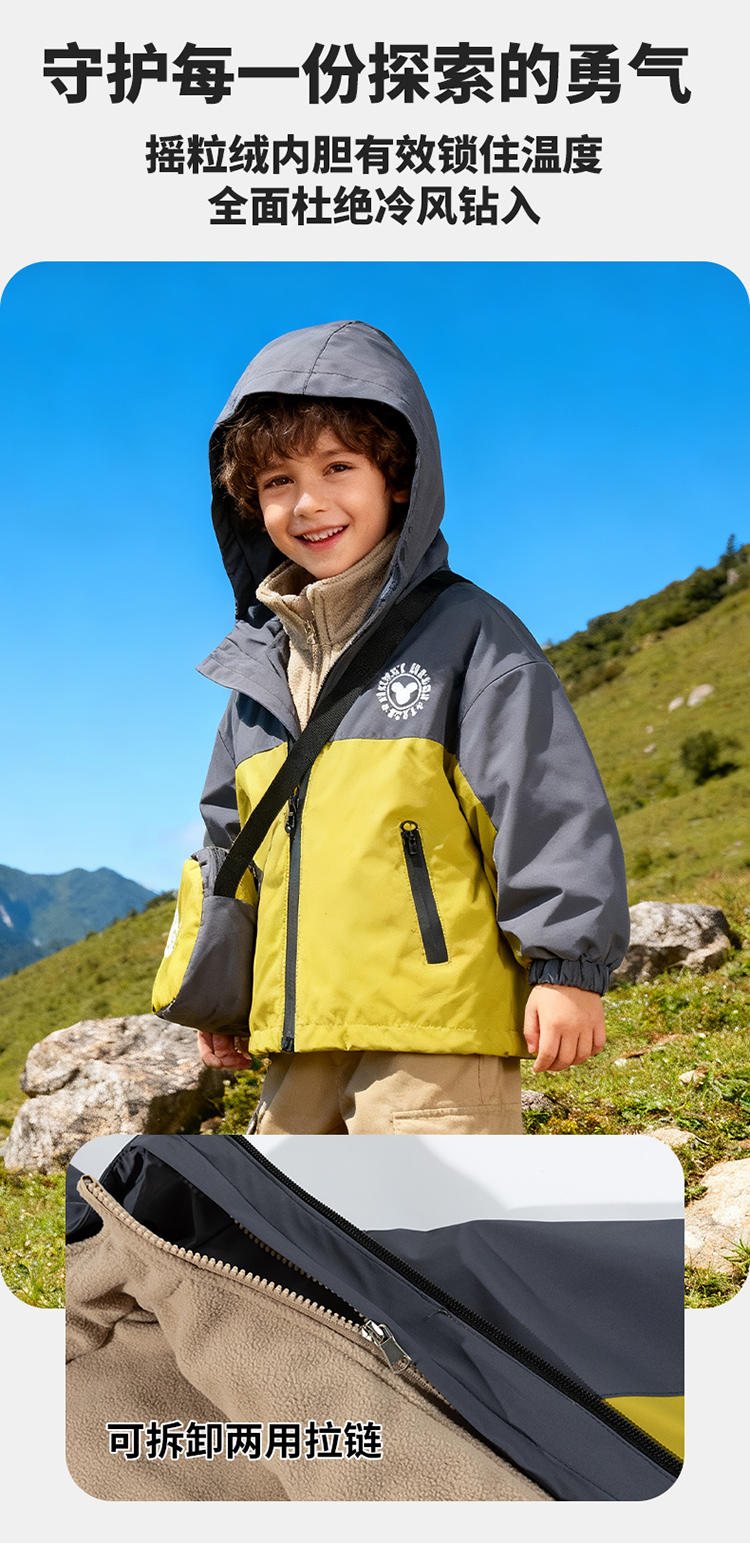 迪士尼一衣三穿2025秋冬款户外登山防风保暖夹棉软壳外套摇粒绒内搭ZD4ES034