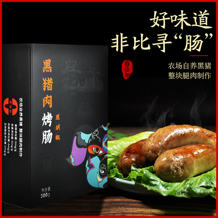 配料表:黑猪肉,纯净水、食用盐,白砂糖,黑胡椒、淀粉,白酒、猪肠衣