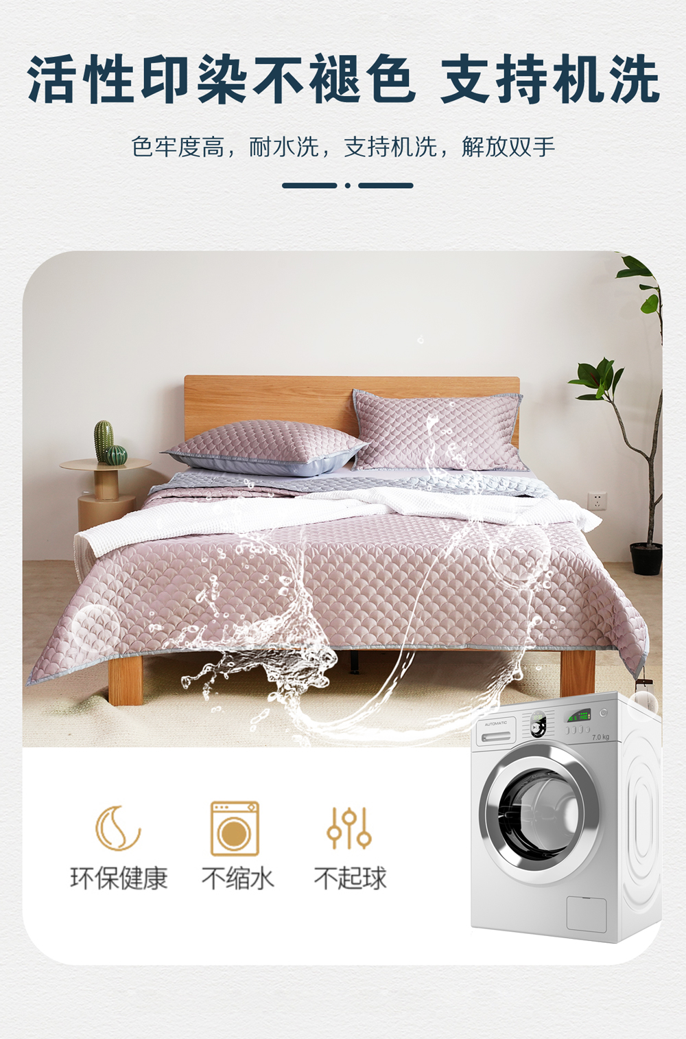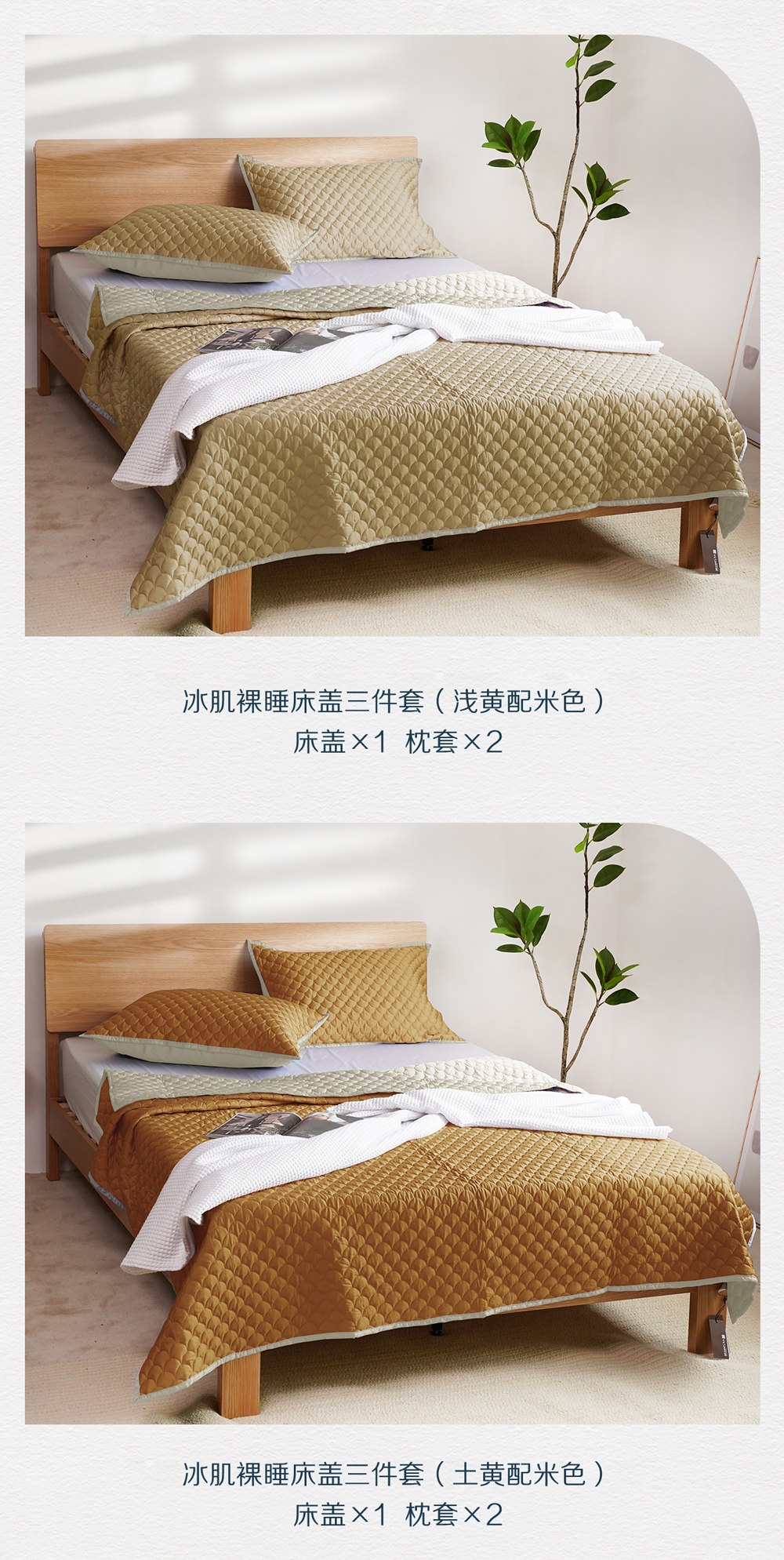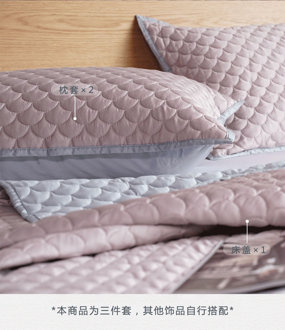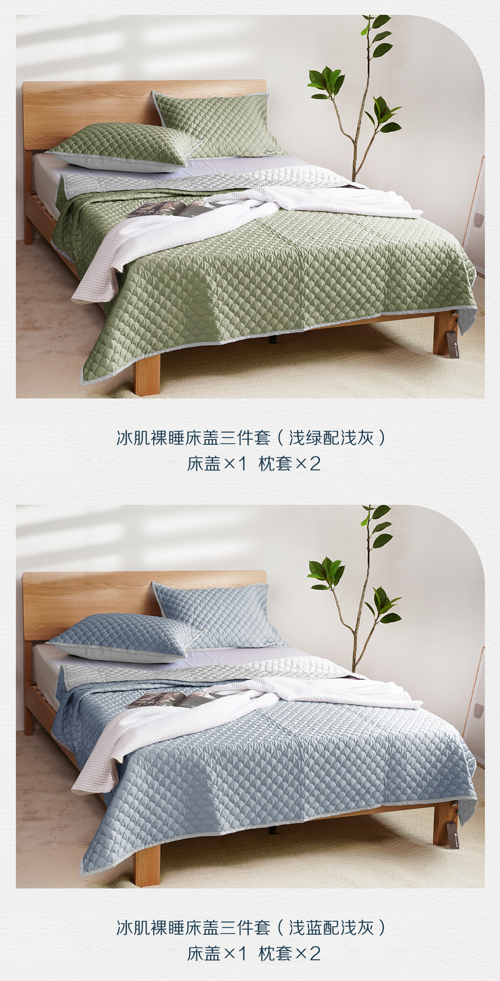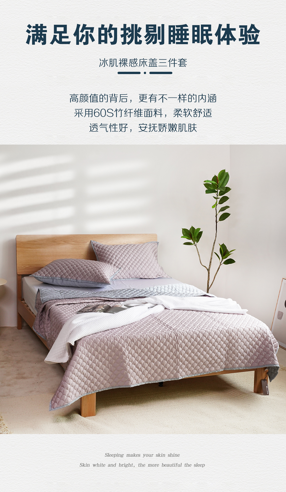 冰肌裸感床盖三件套竹纤维绗缝床盖枕套素色简约200*230