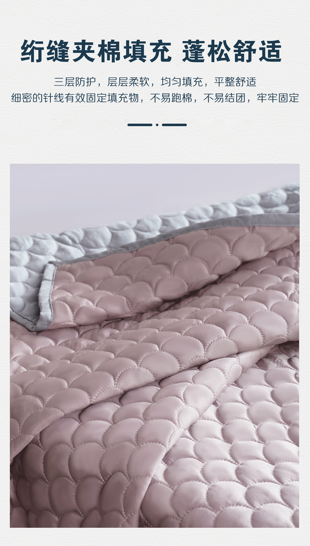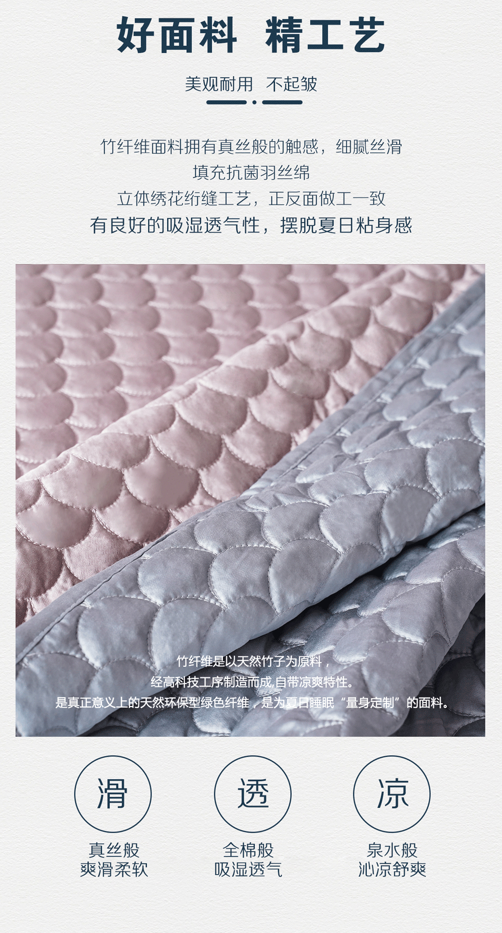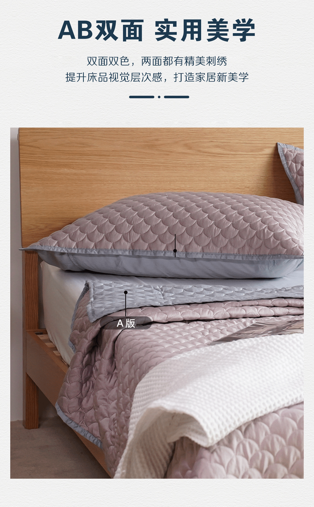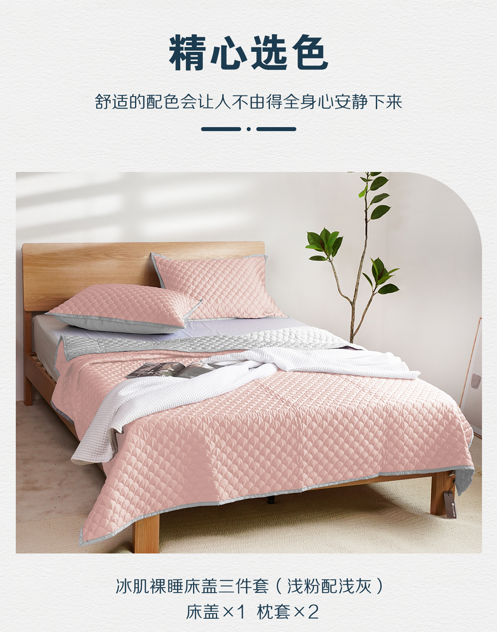 冰肌裸感床盖三件套竹纤维绗缝床盖枕套素色简约200*230