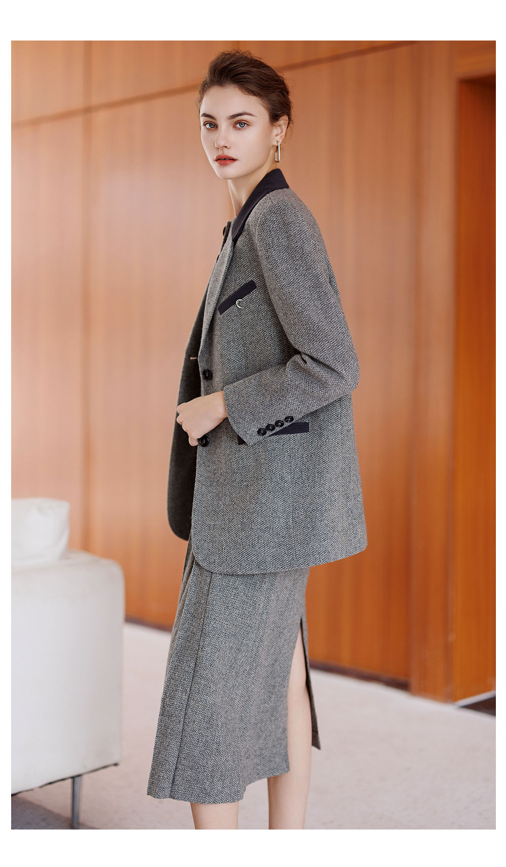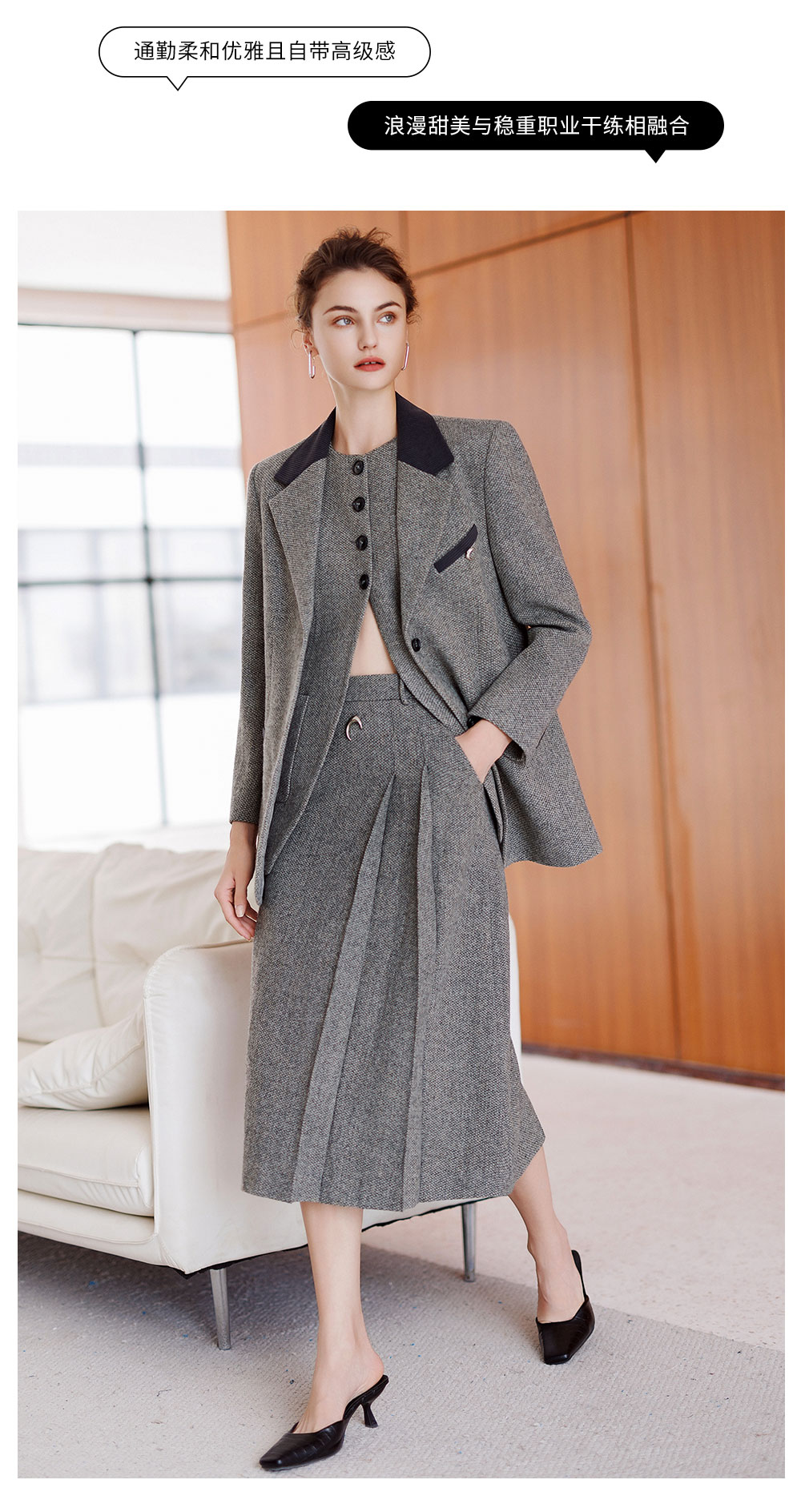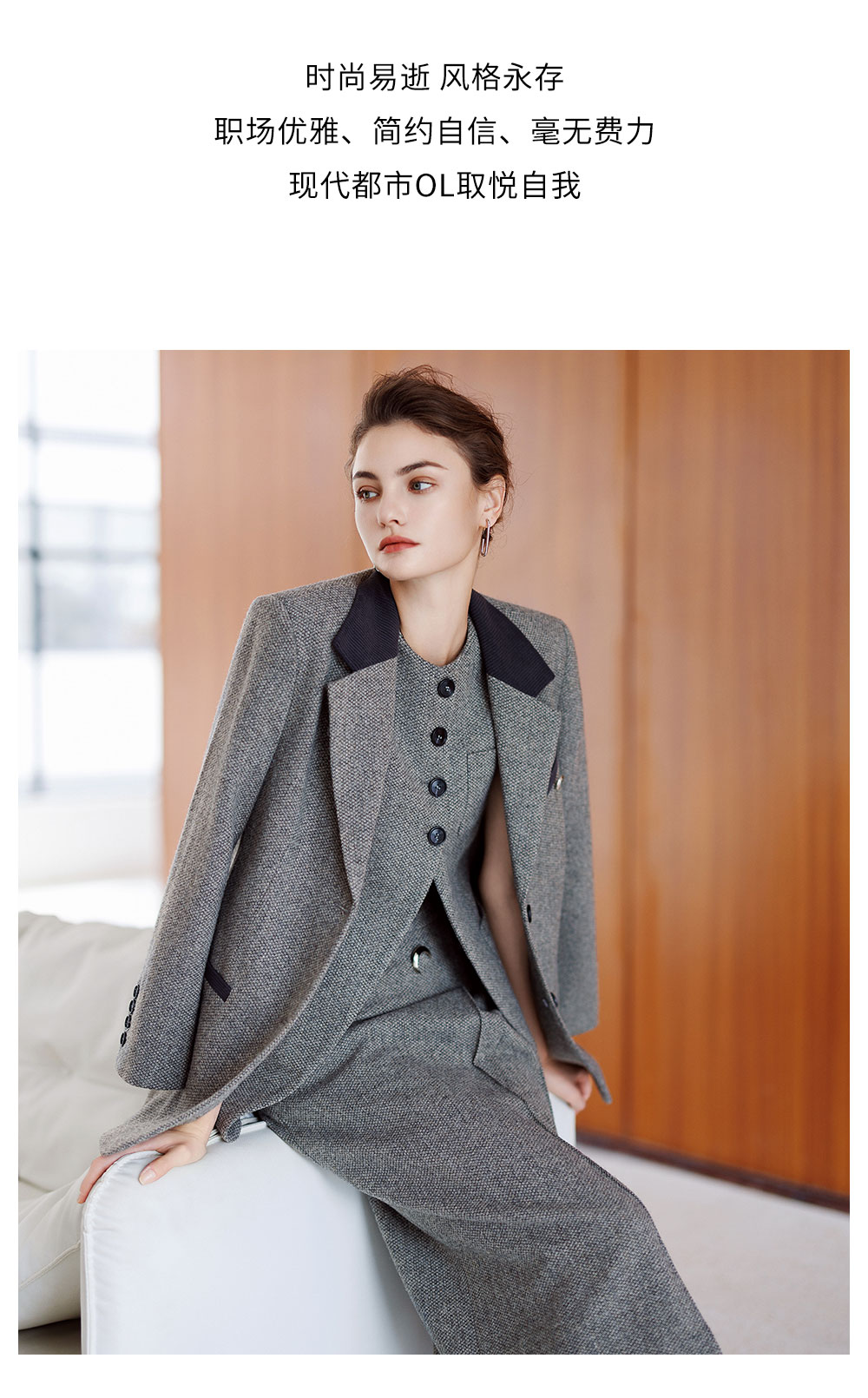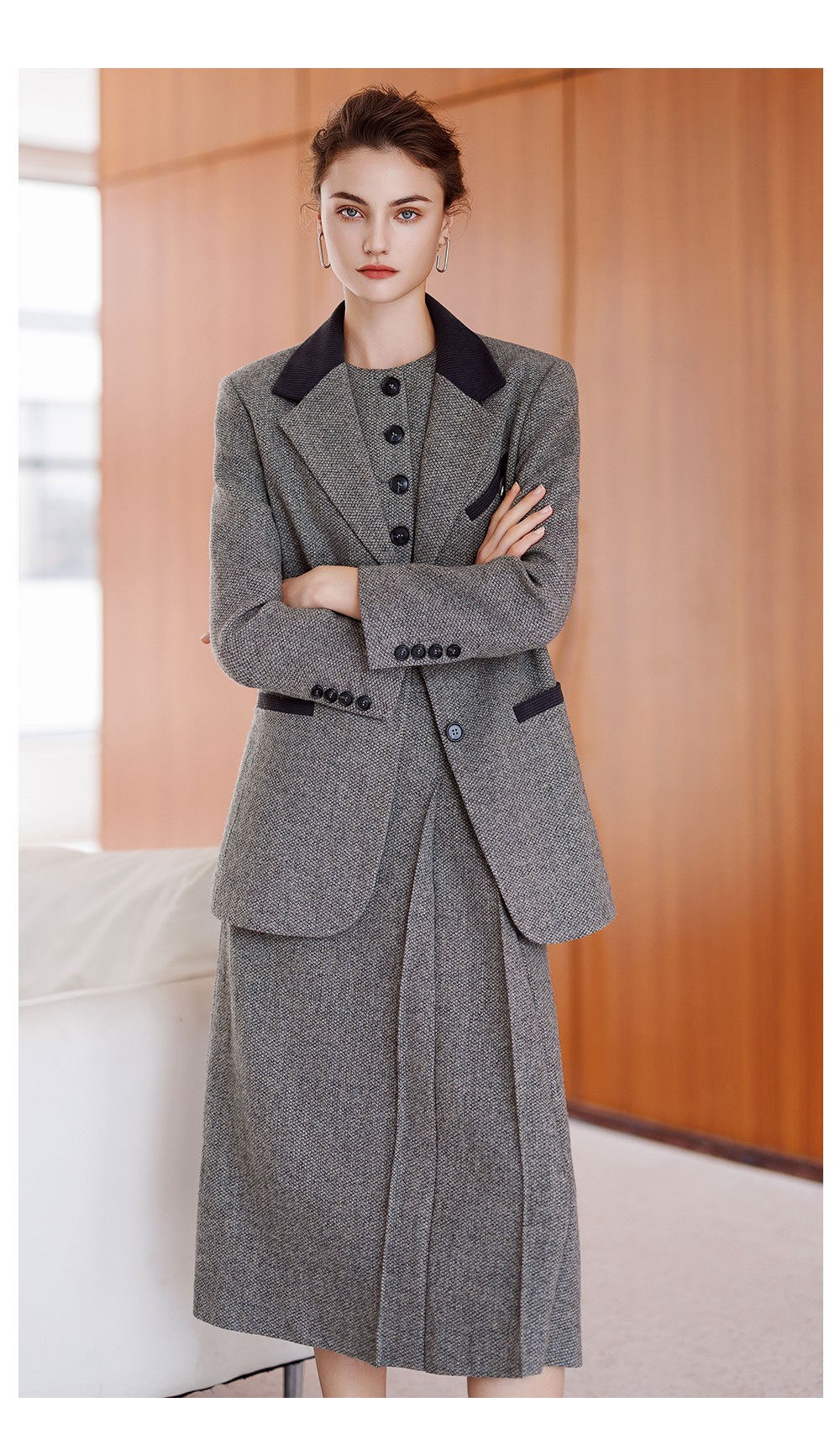 AD灰色格纹肌理感西装三件套女2025新款秋冬羊毛小香风外套半身裙