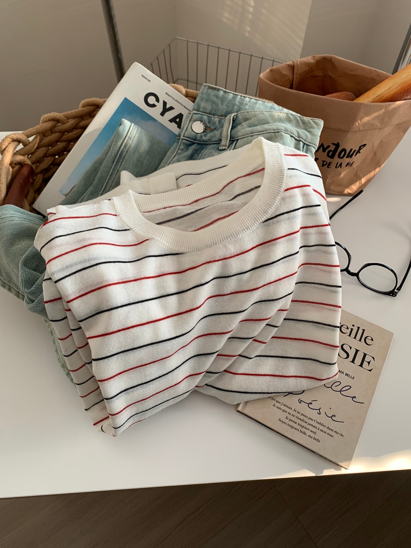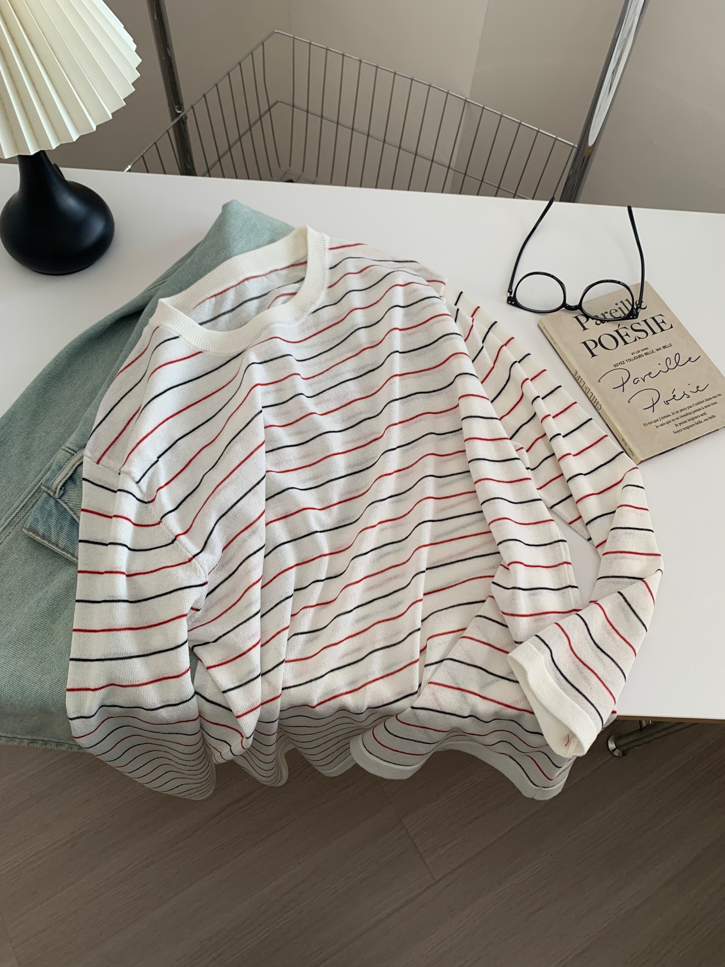 清透感莱赛尔亚麻针织防晒罩衫!女26春秋韩版宽松圆领冰丝长袖上衣!