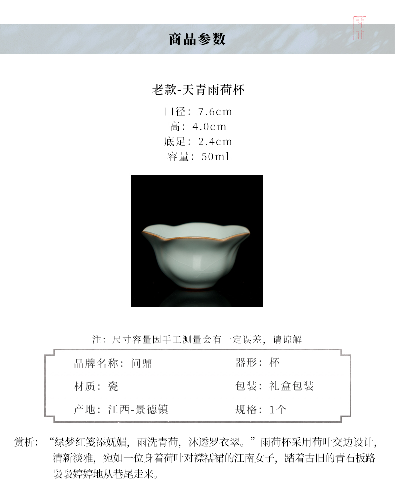问鼎汝瓷鼎峰系列天青老款雨荷杯
