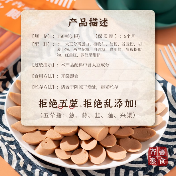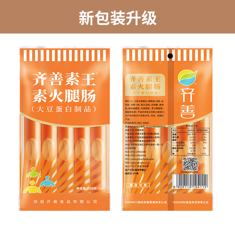 齐善素王火腿肠 佛家纯素香肠 1包5根