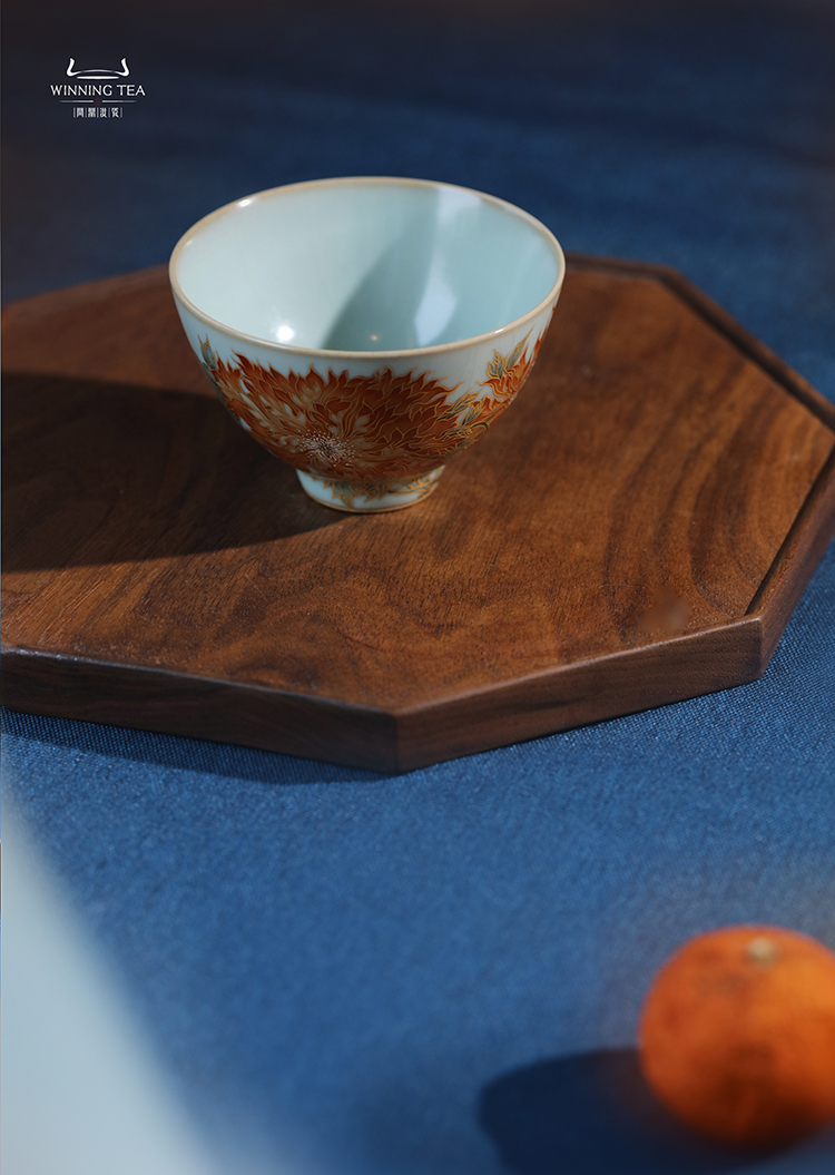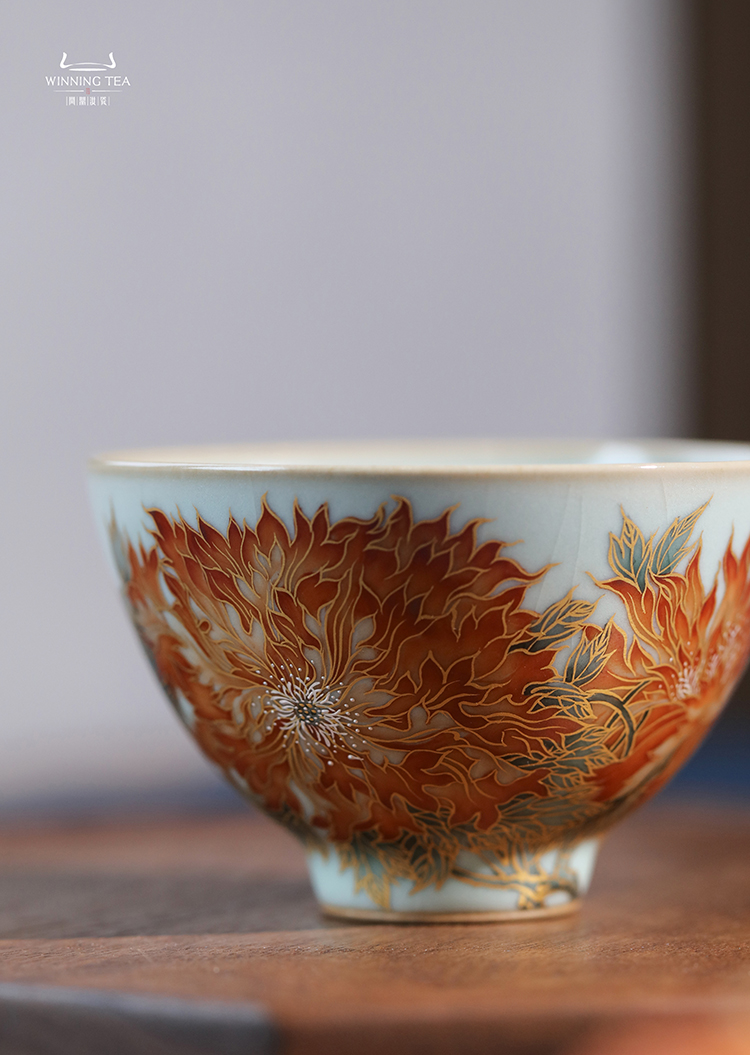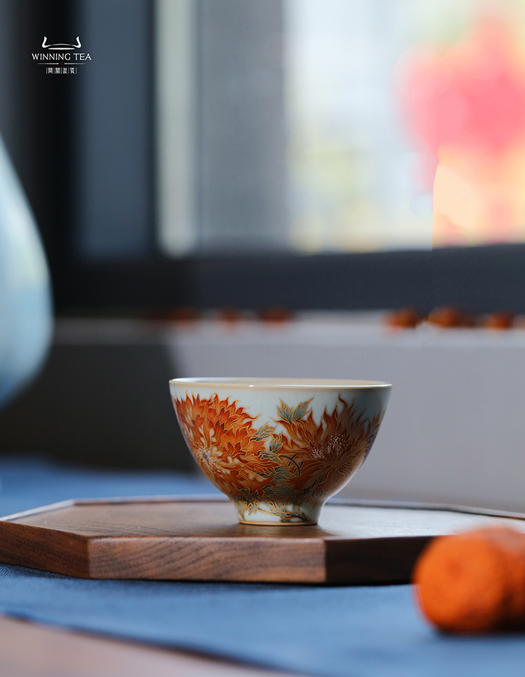 寒香慕古釉里红双勾莲压手杯(下单前请先咨询客服)