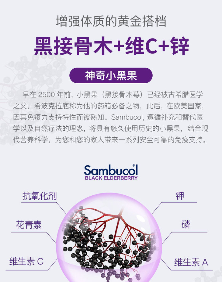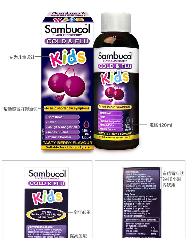 【保税仓】澳洲Sambucol黑接骨木儿童VC维生素C补锌营养糖浆120ML