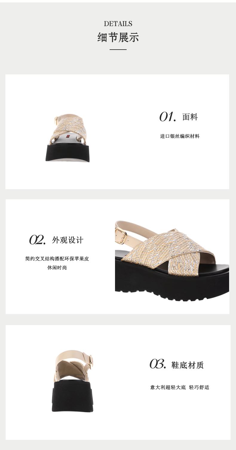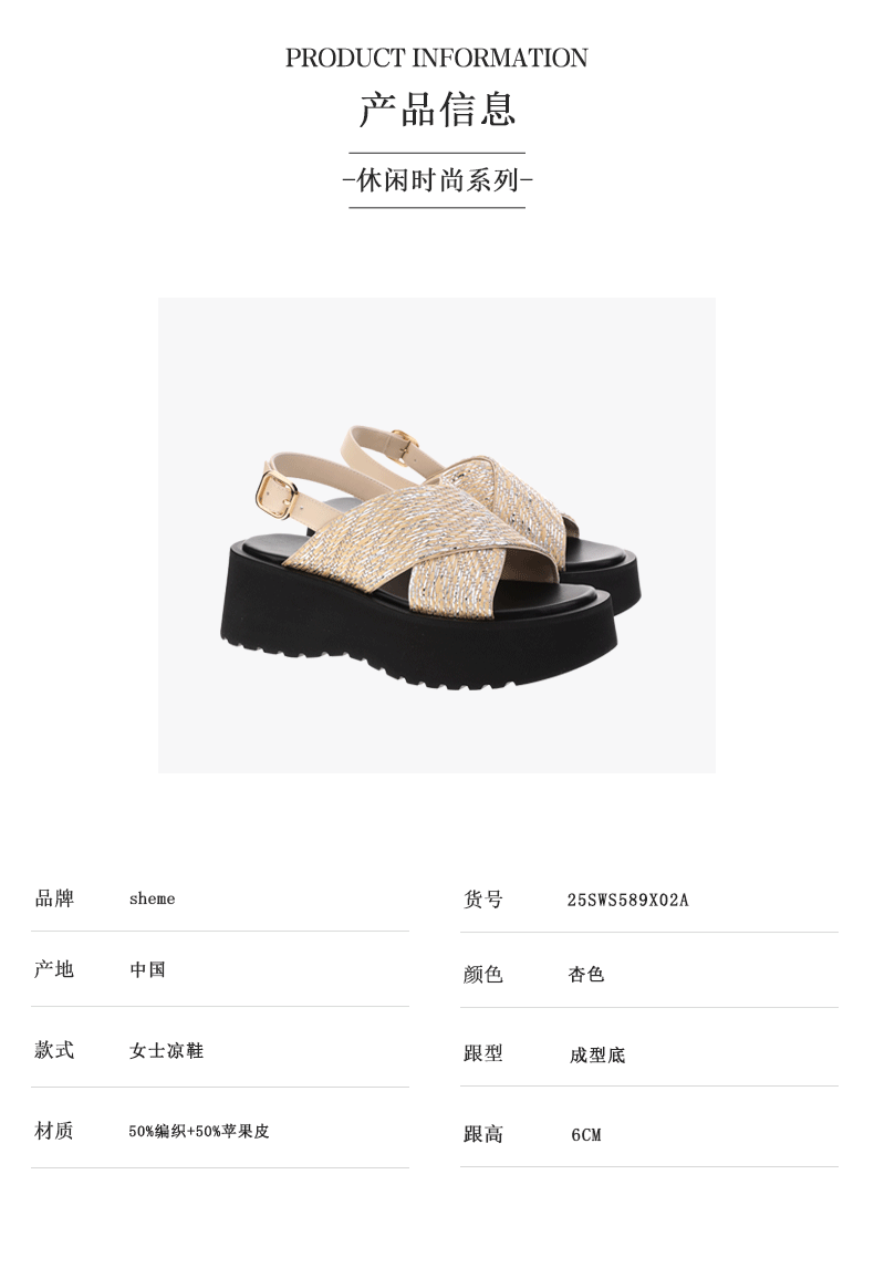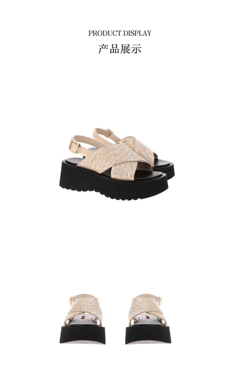 sheme银丝交叉织带休闲时尚女士厚底凉鞋可定制