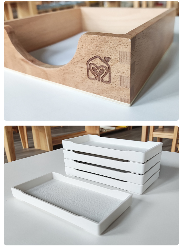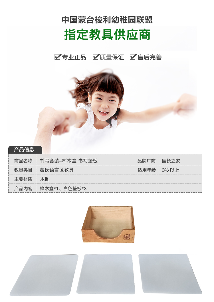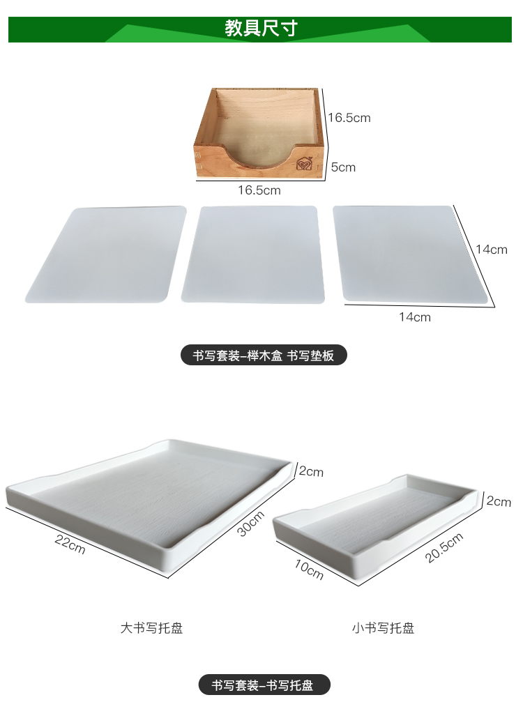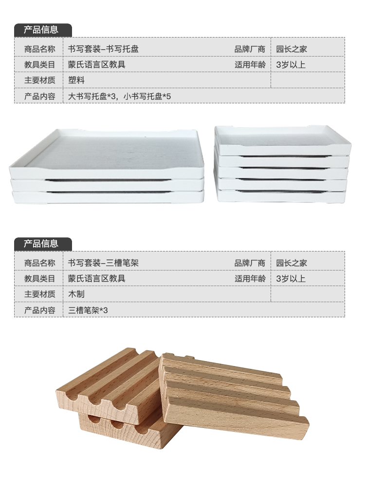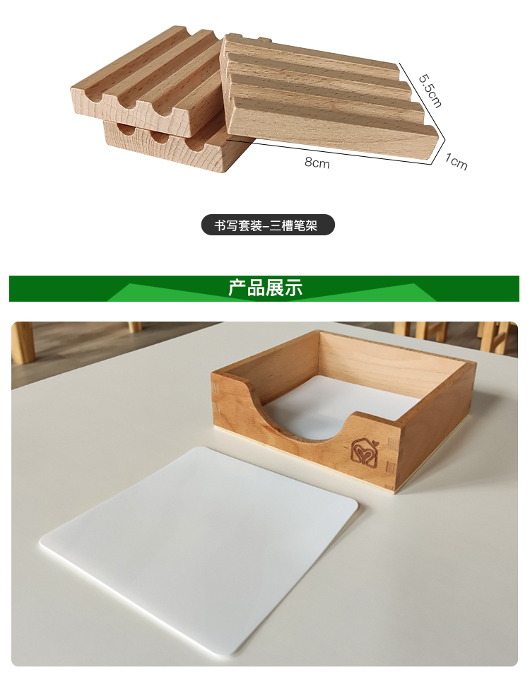 语言区教具—书写套装 托盘 榉木盒 垫片 三槽笔架