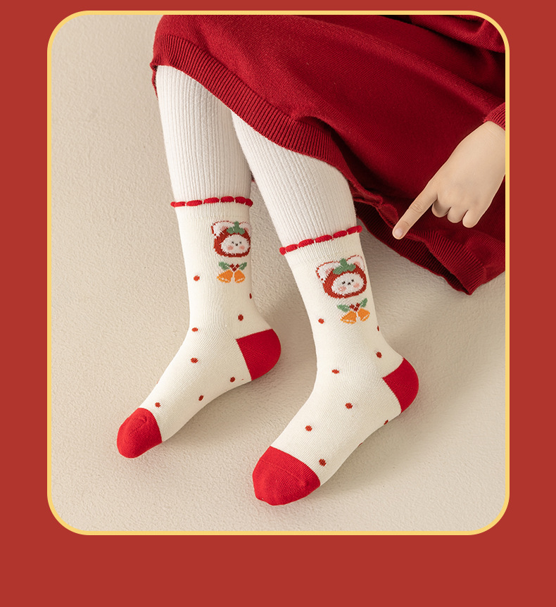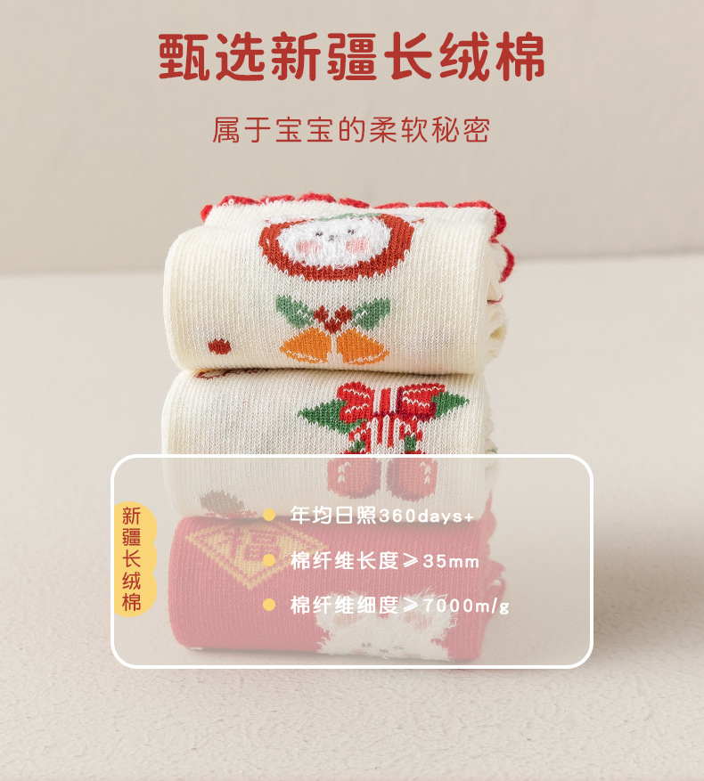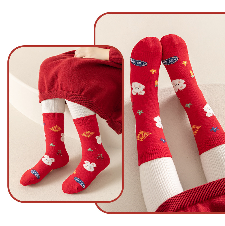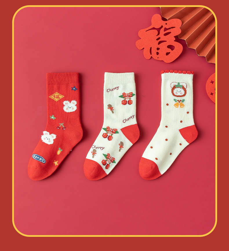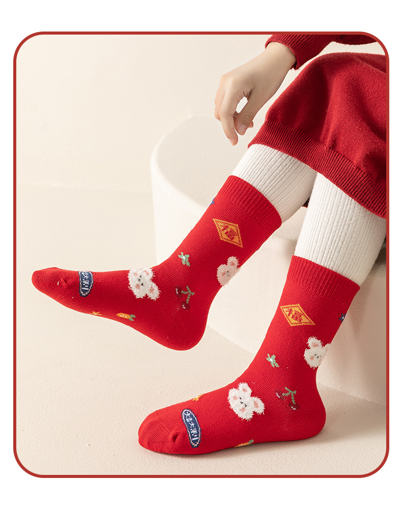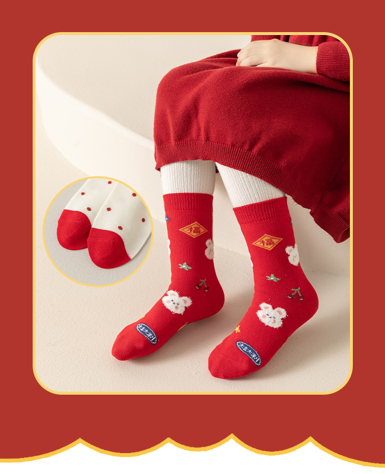 【超值19.9抢3双,新年穿红袜】日照新疆棉呵护你的小脚,马年卡通儿童新年袜子,优选长绒精梳棉,细腻透气亲肤,可爱秋冬中筒袜本命年儿童棉袜新年礼盒年货礼盒QQ