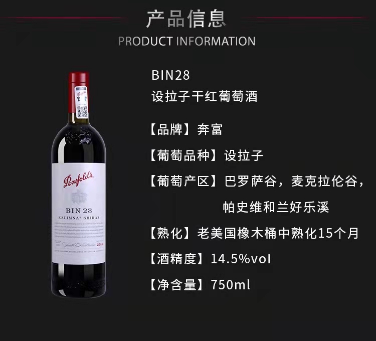 BF奔富BIN28卡俪那设拉子红葡萄酒Penfolds BIN28 Kalimna Shiraz(2018)