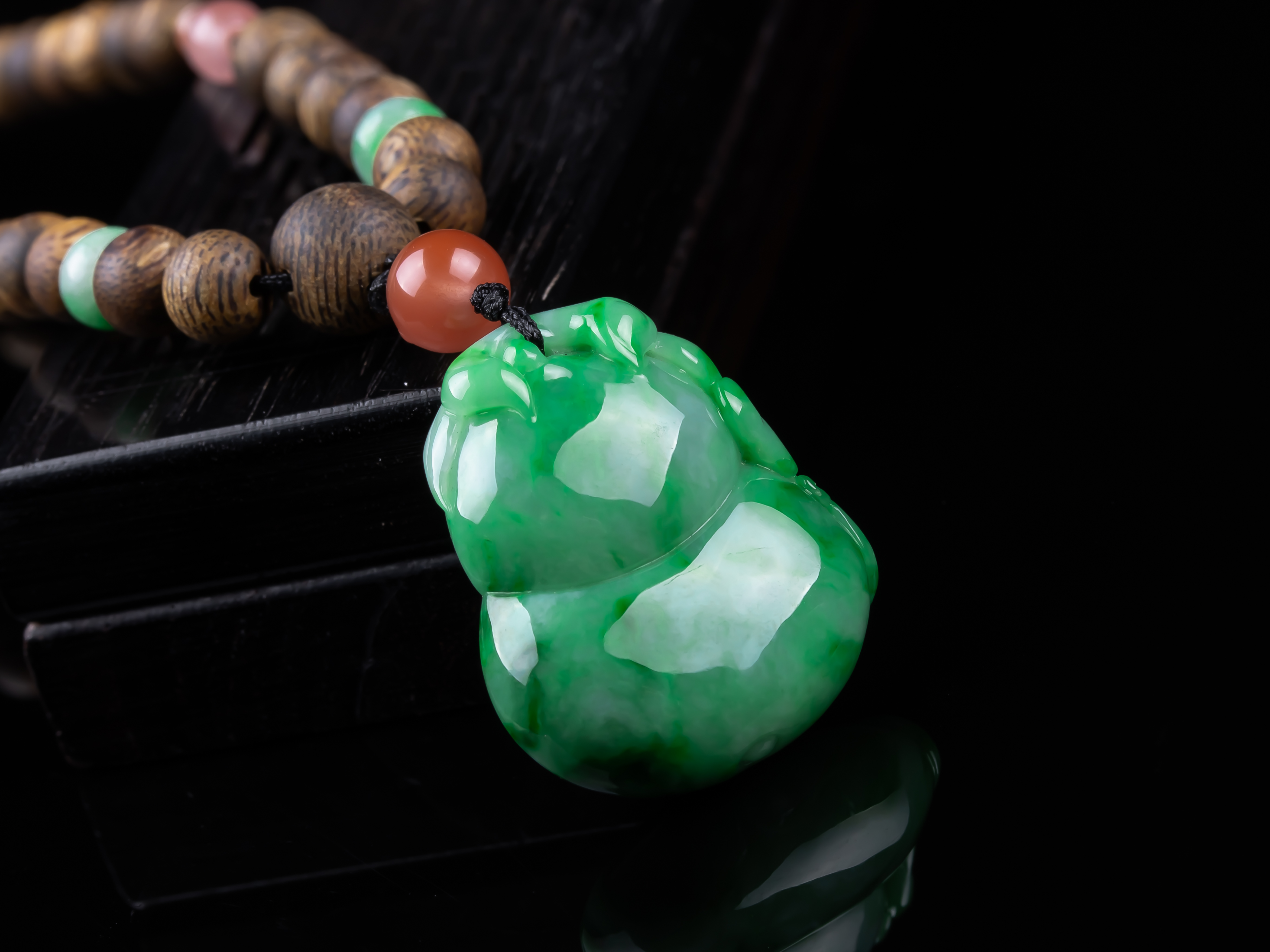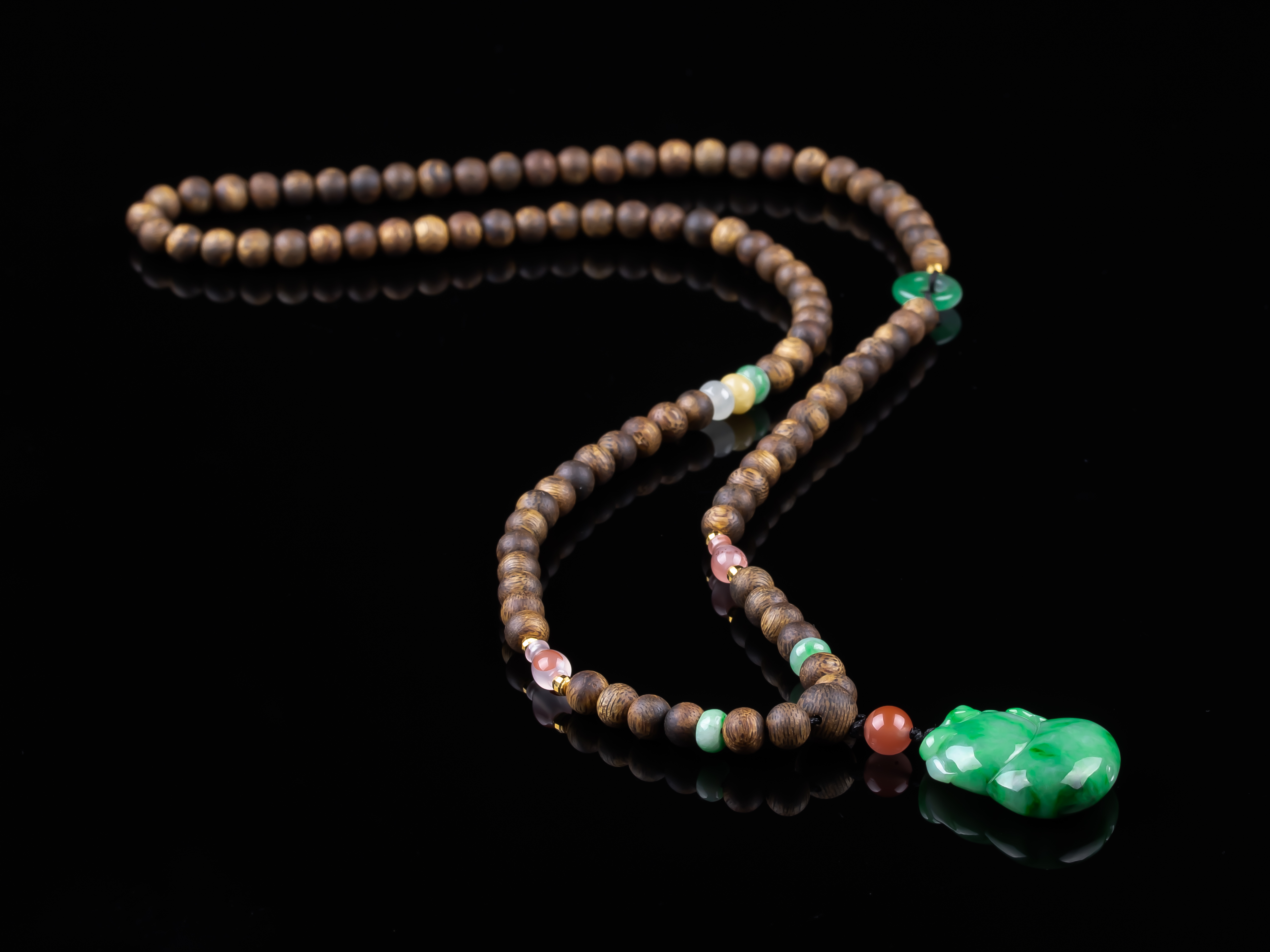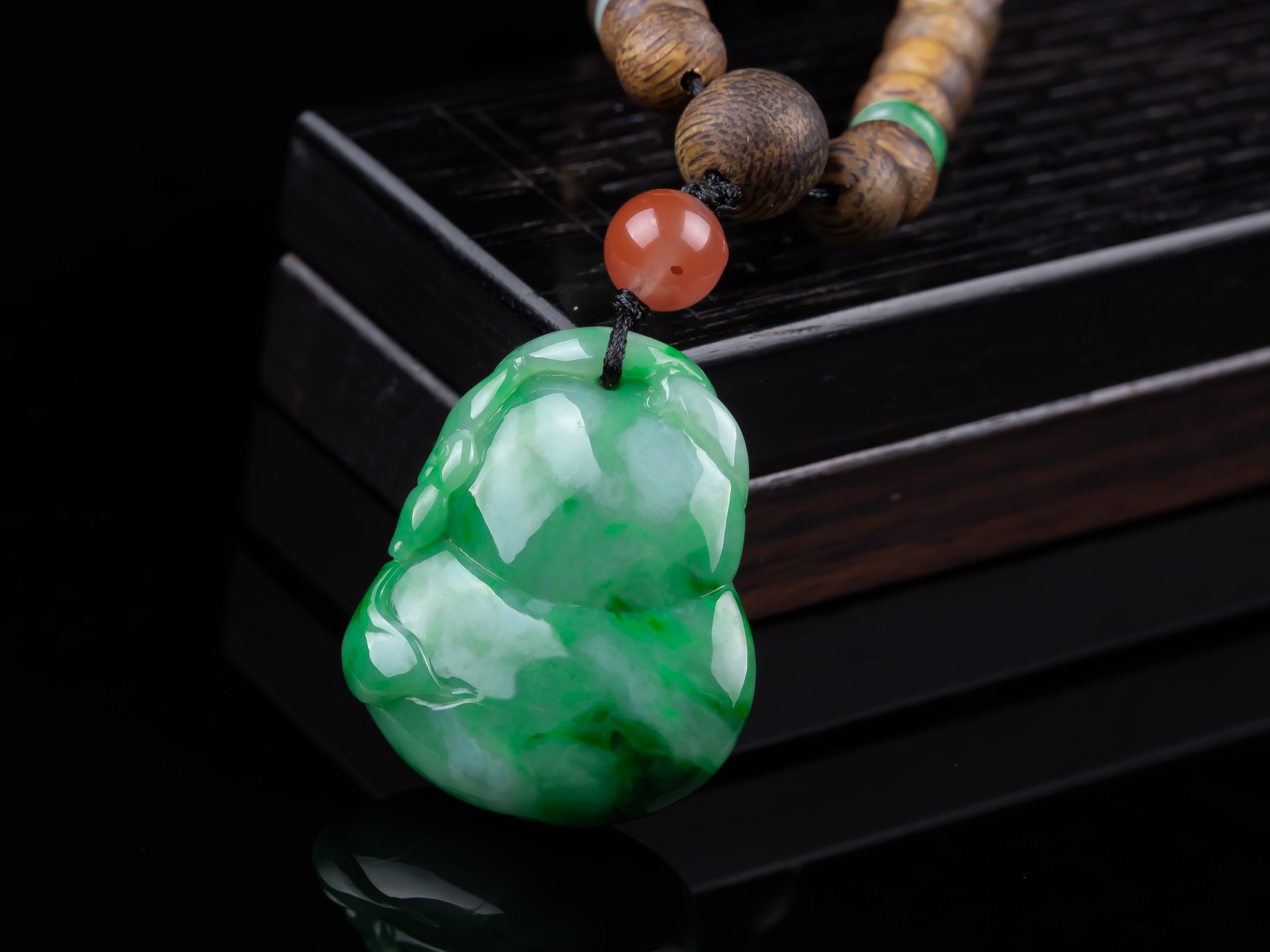 XY0259沉香+飘绿翡翠立体葫芦挂件,天然沉香主链,原色原味,香味自然清甜,配饰:南红、非洲翠、925银。非常好厚庄的立体葫芦,几乎满色,底子细腻,色泽抢眼,款式穿搭典雅有韵味,福禄双倍。