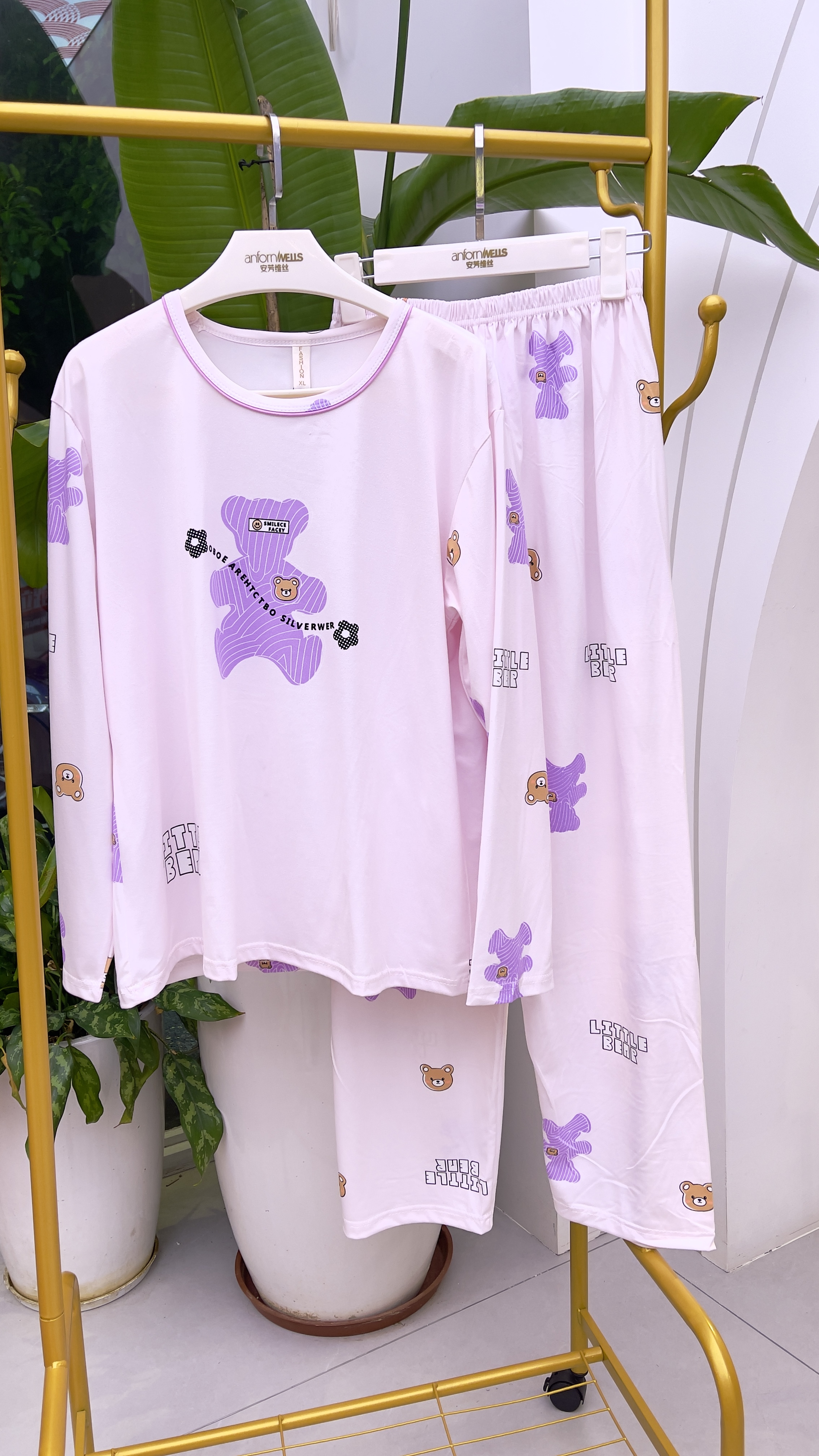 长袖长裤拉架棉圆领套头睡衣1415320