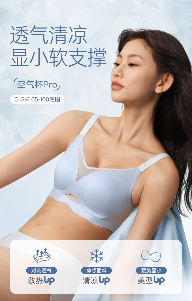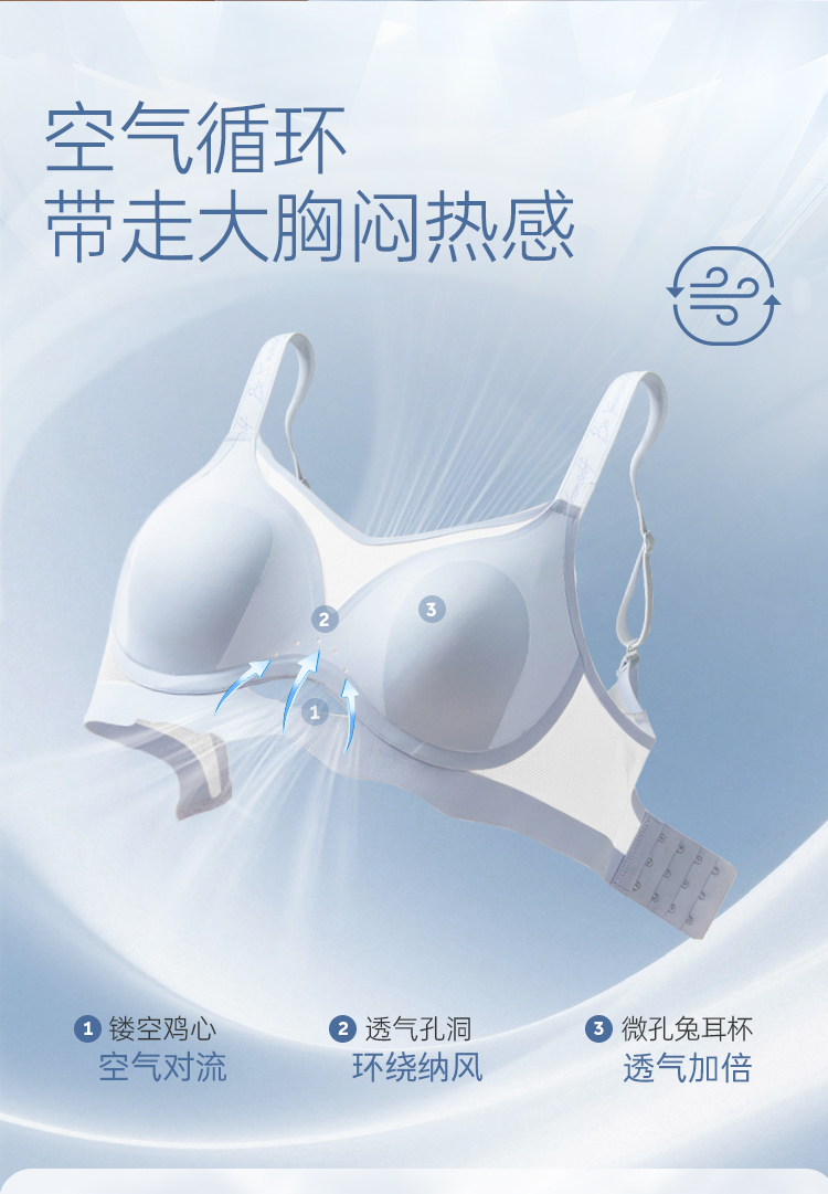 [空气杯Pro]大胸显小无钢圈软支撑透气兔耳杯文胸无痕内衣胸罩