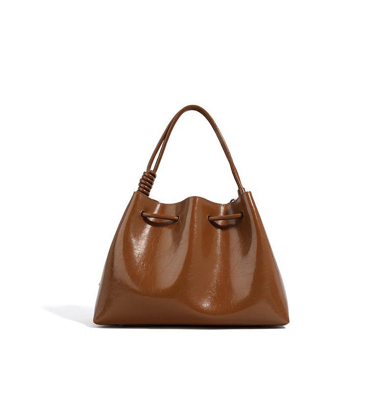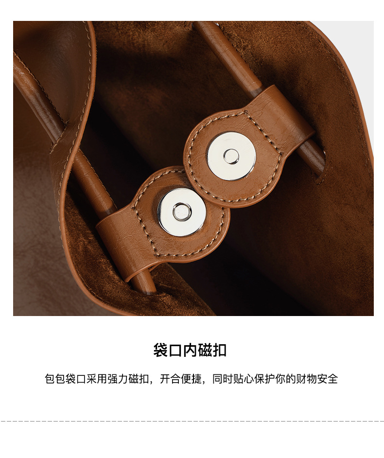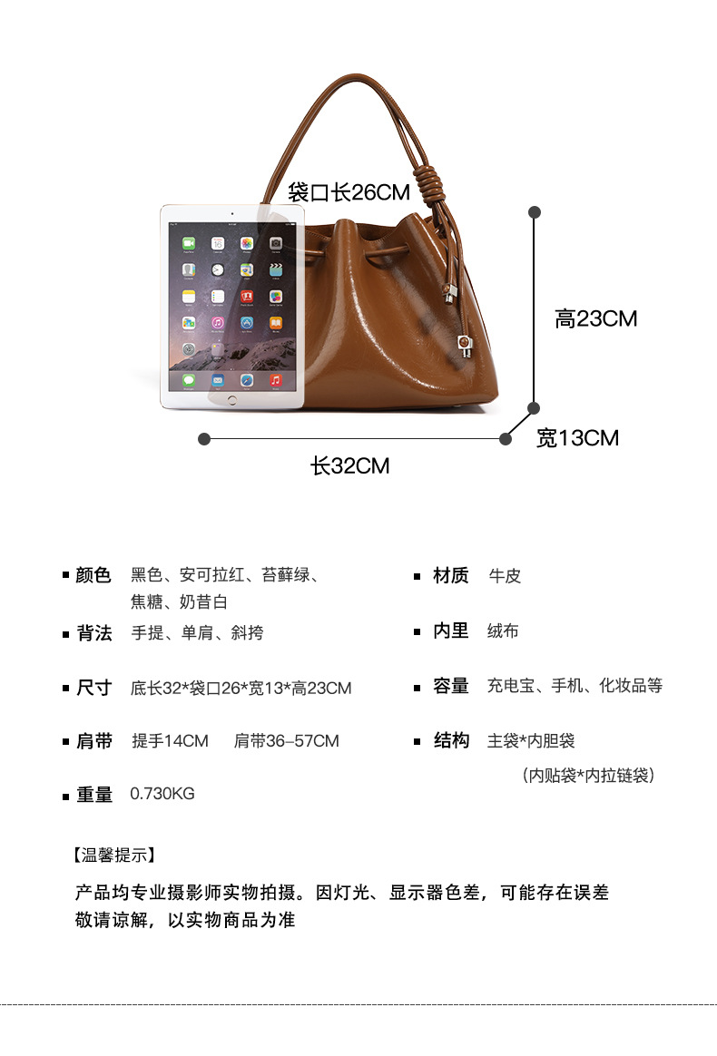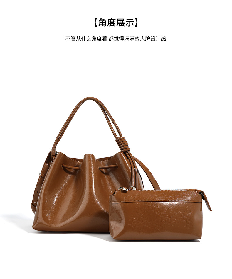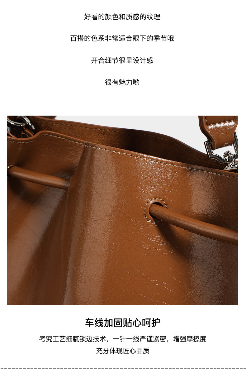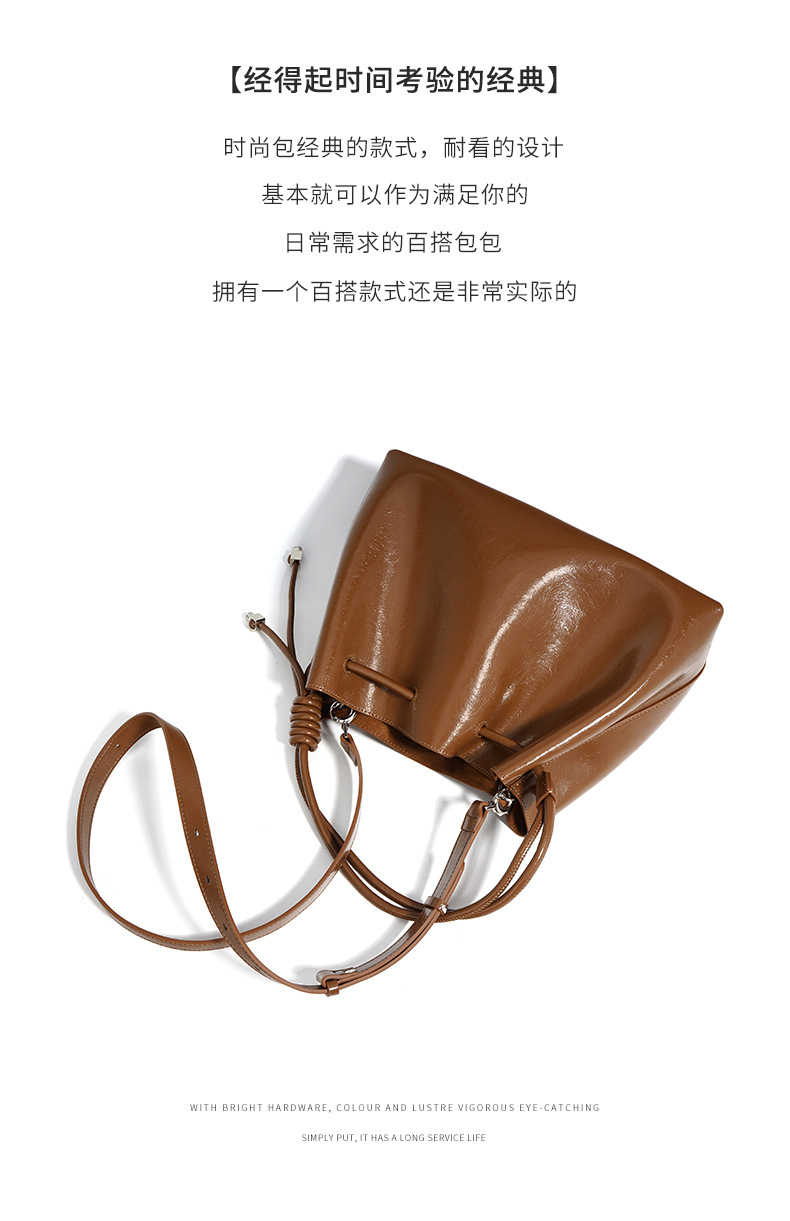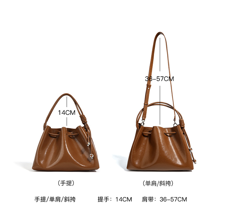 【预售3天】2025新款欧美时尚包包斜挎包抽绳拼接手提水桶包IY8689