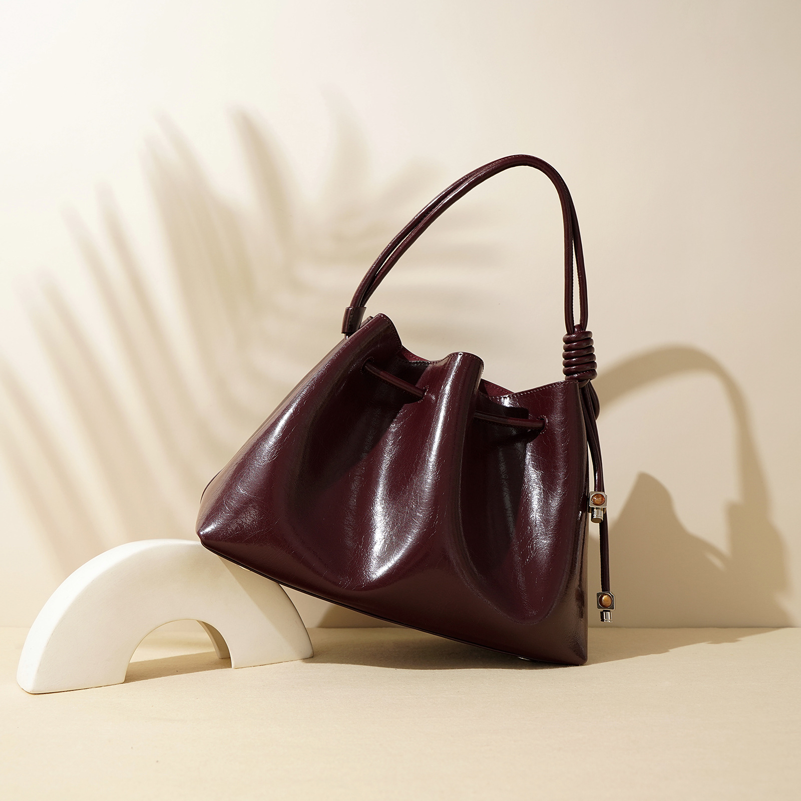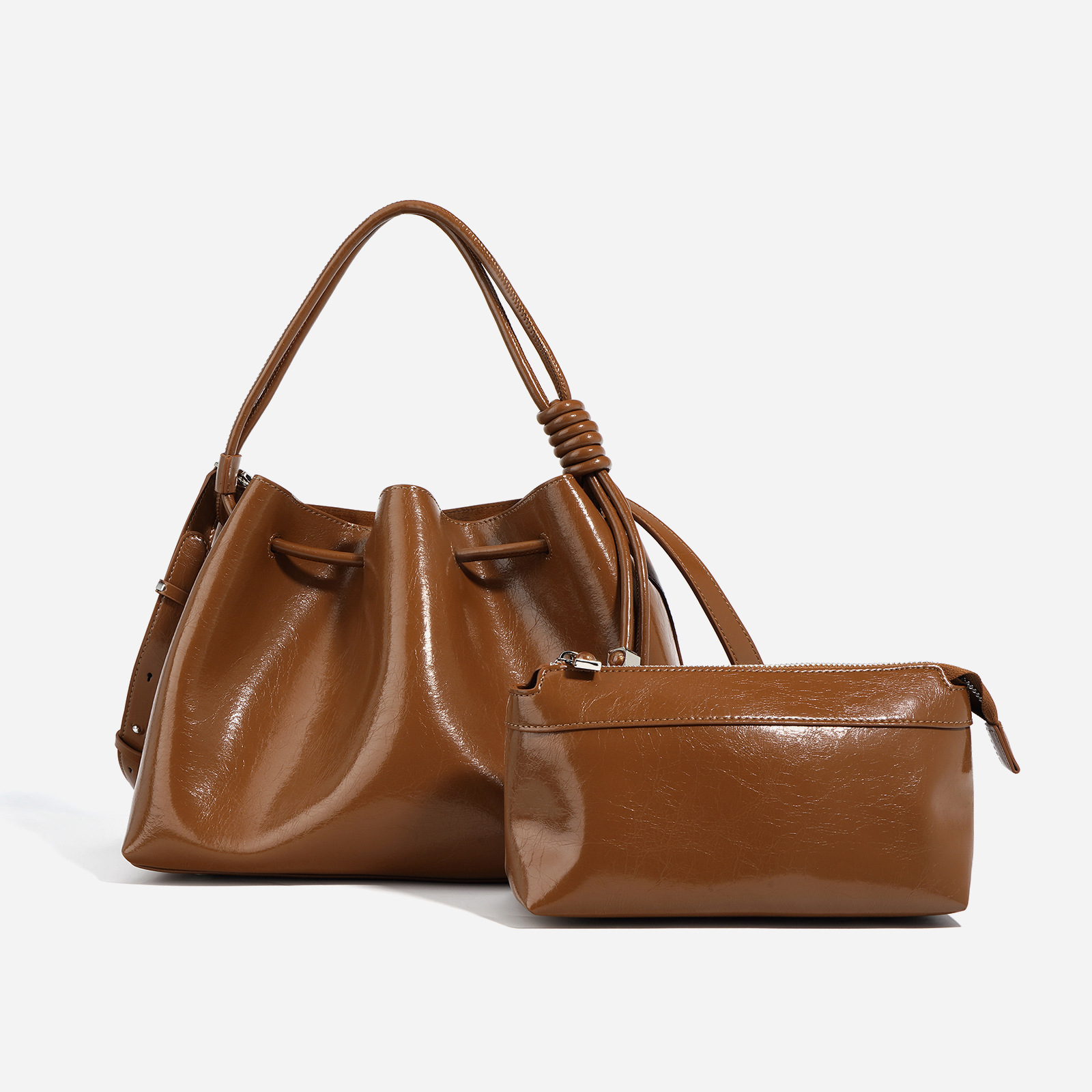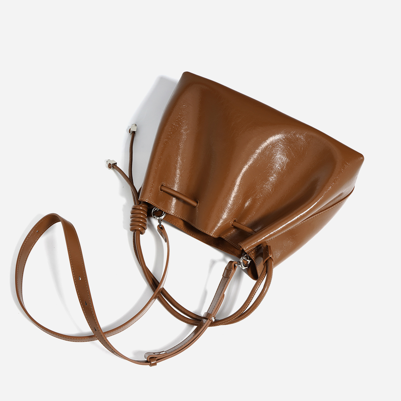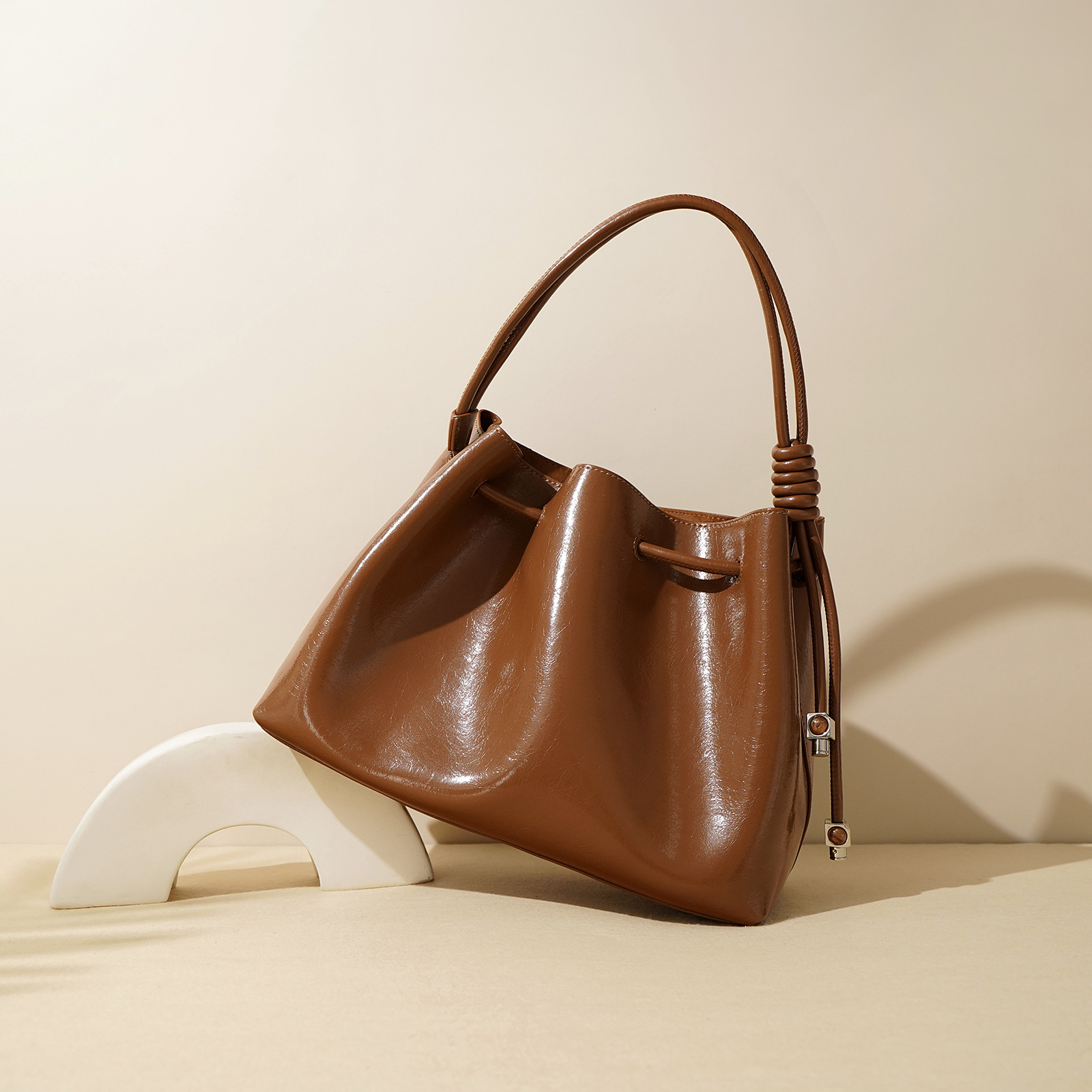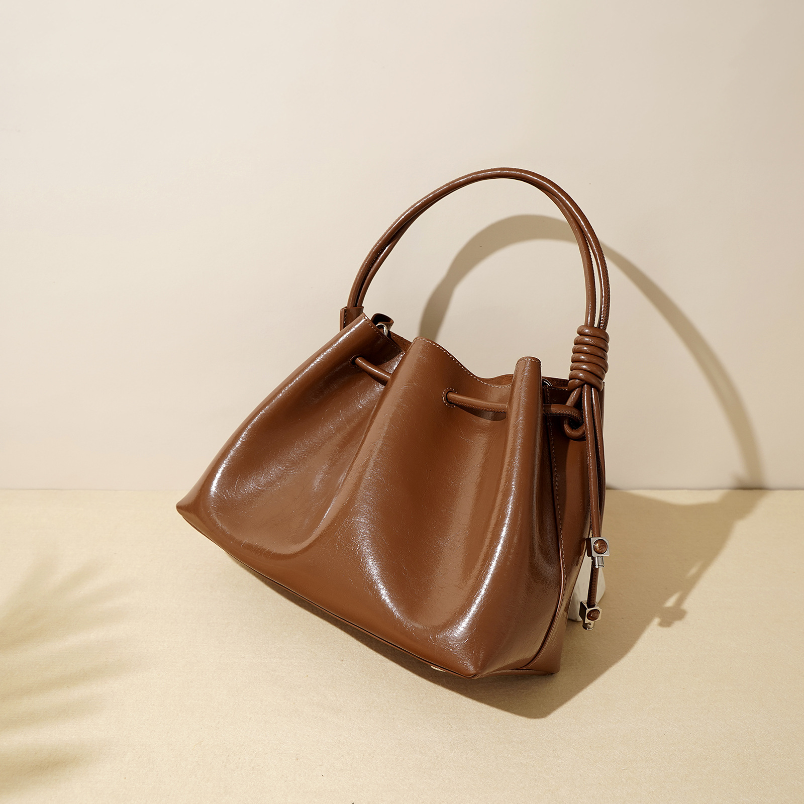【预售3天】2025新款欧美时尚包包斜挎包抽绳拼接手提水桶包IY8689