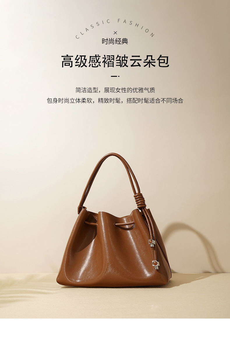 【预售3天】2025新款高级女包小众通勤高级感手提时尚褶皱云朵包F9820A