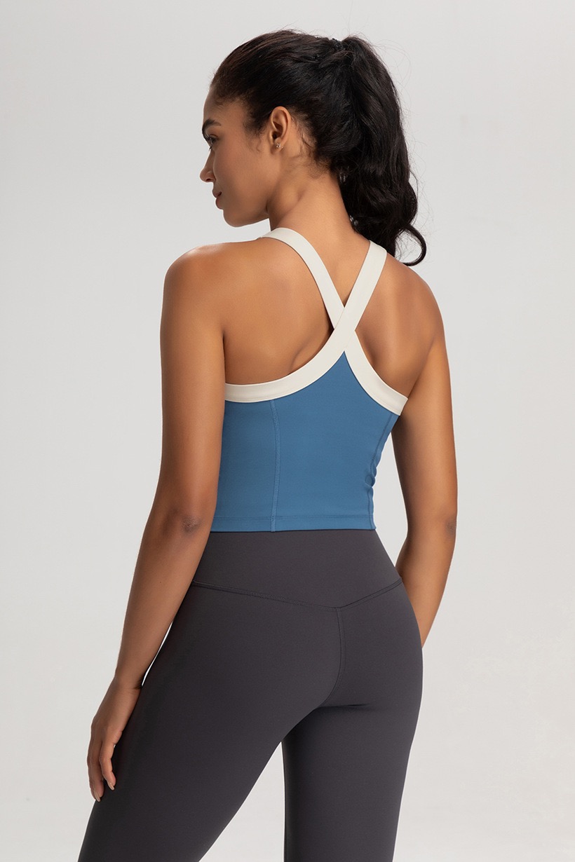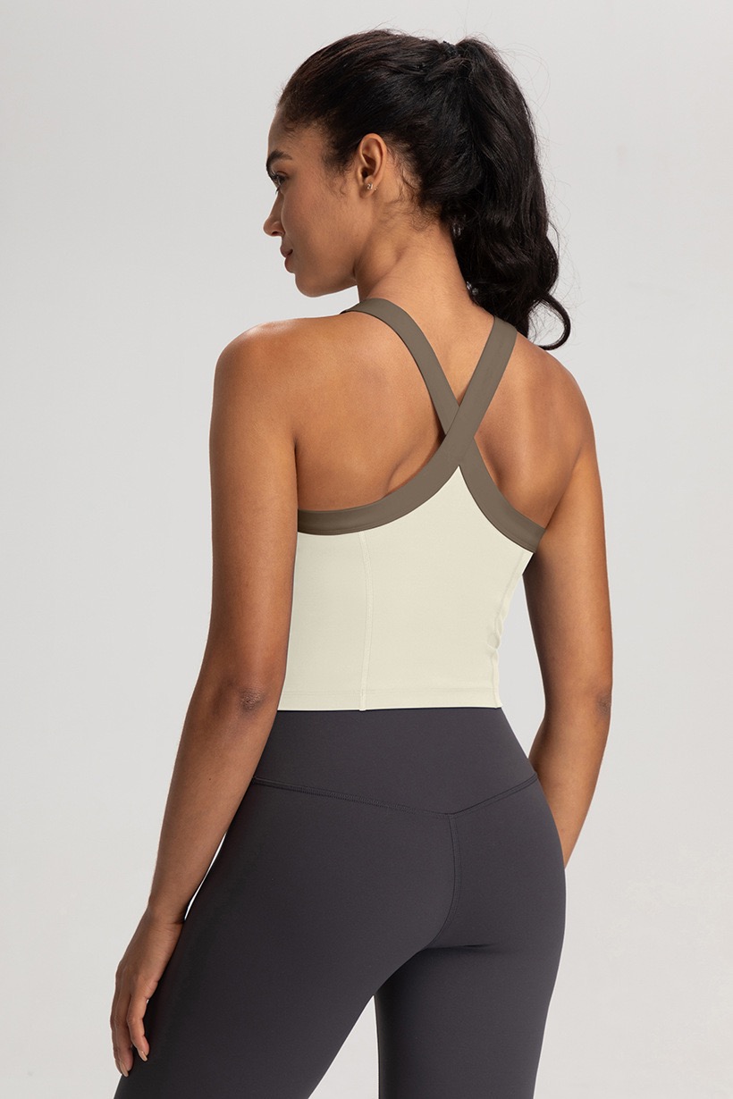 新款一体式运动内衣女带胸垫交叉健身文胸高强度防震跑步瑜伽背心 000YNDA102