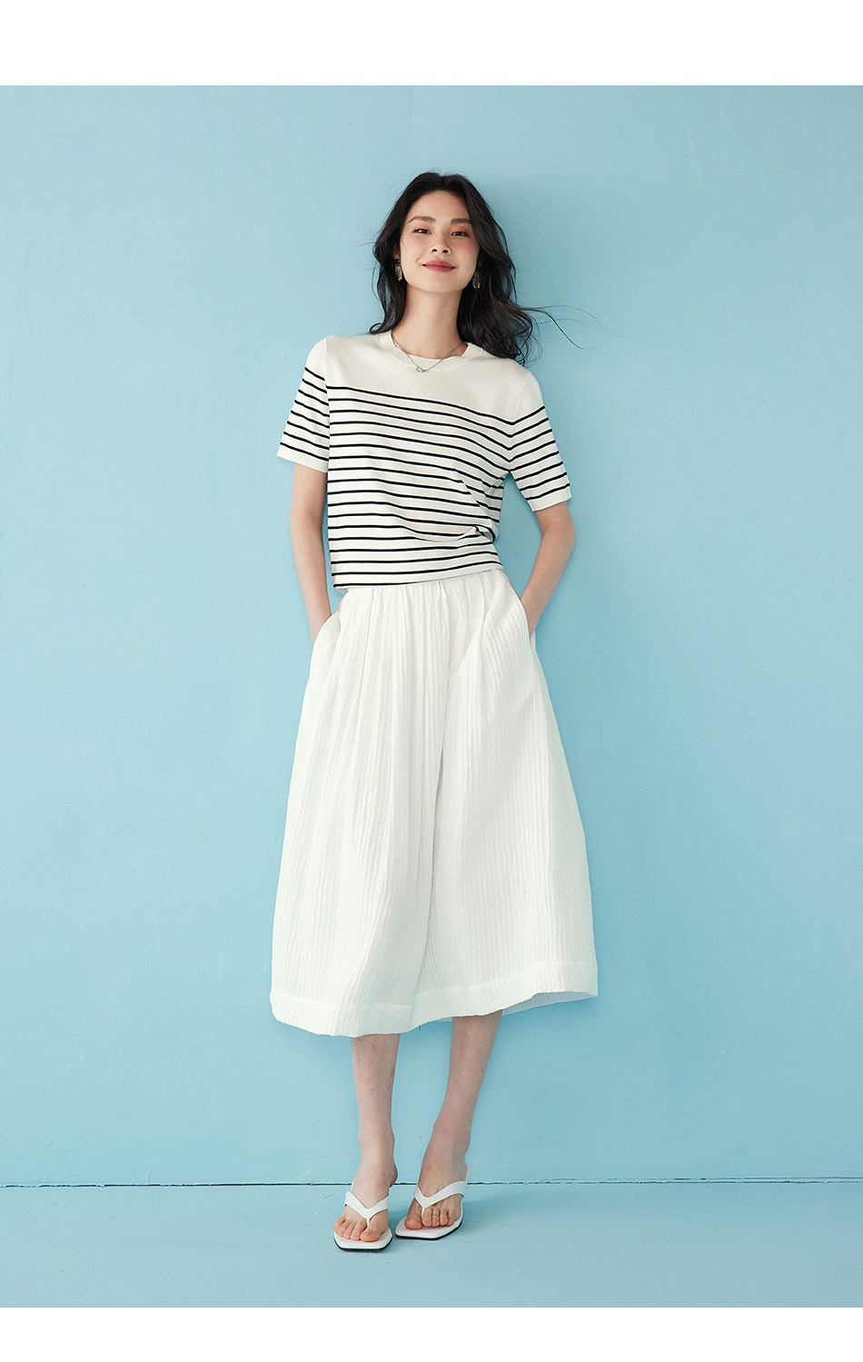 棉仓363801034-光盾遮热SORONA卷边撞色袖口微宽松圆领短袖T恤