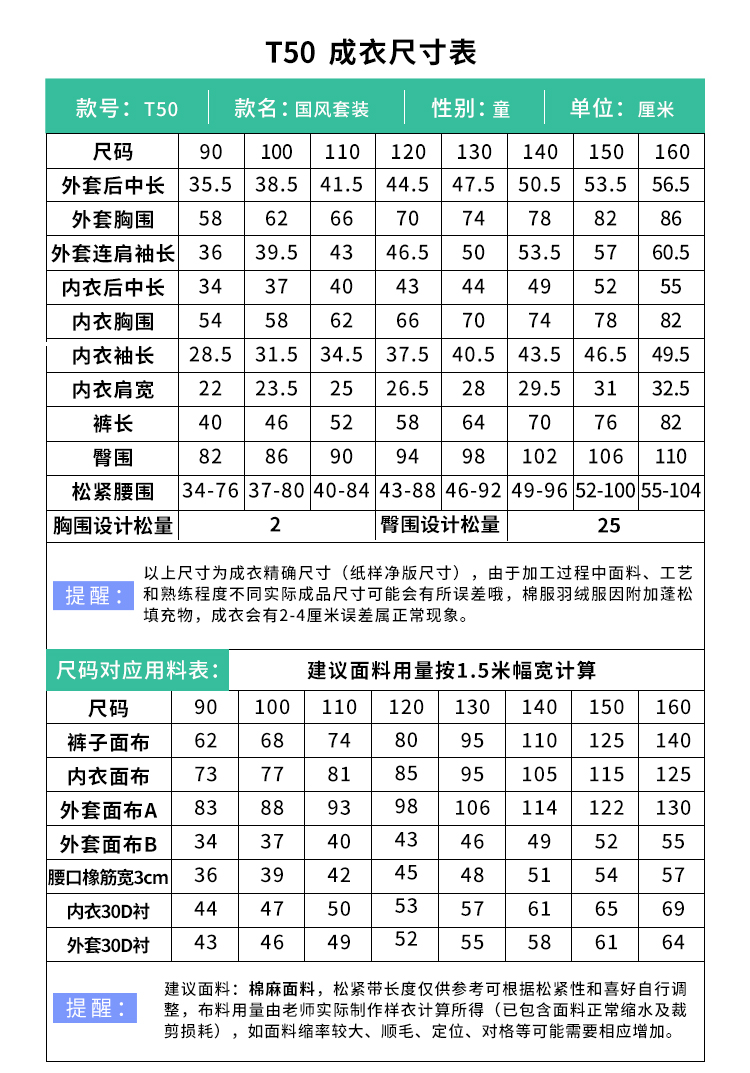 裁缝学苑 T50儿童唐装中国风古装1:1实物服装纸样剪裁图纸牛皮纸