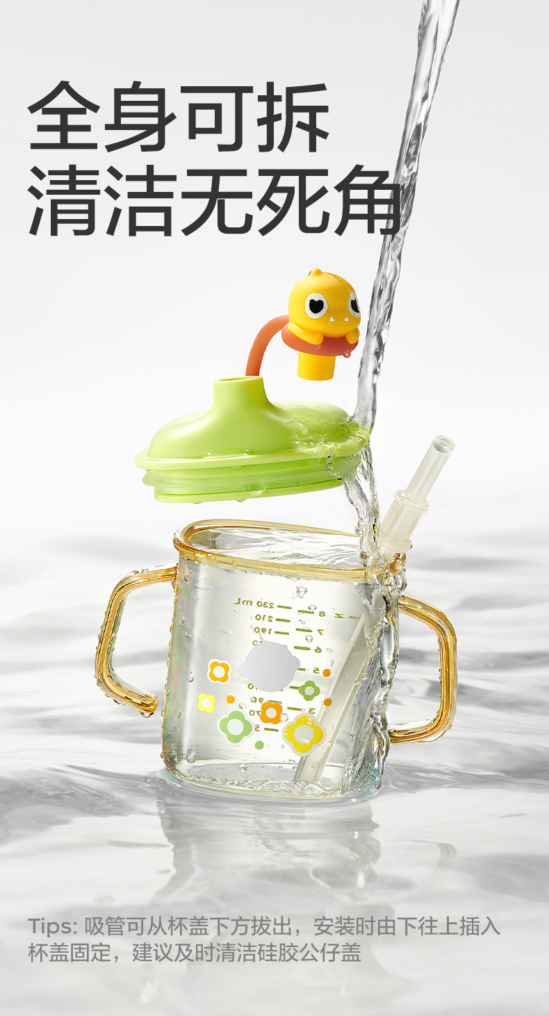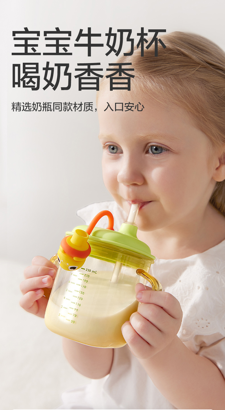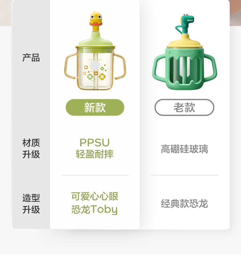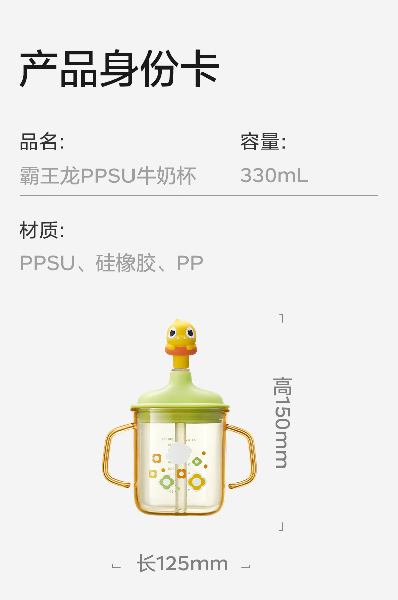 baby care330ml霸王龙牛奶杯PPSU款BC2404572原力青