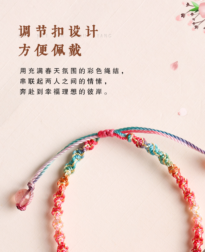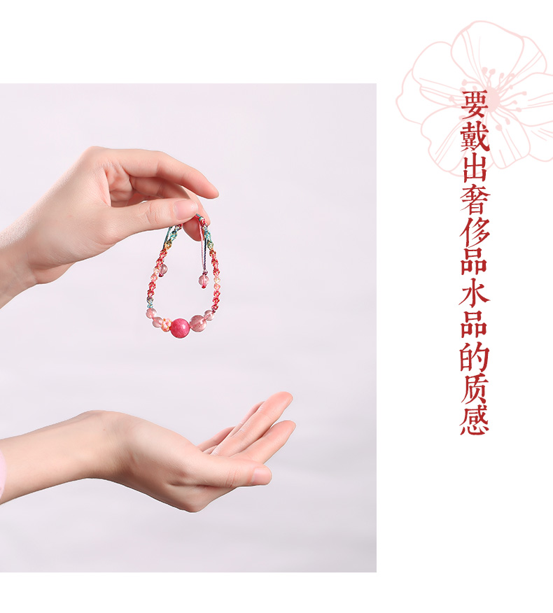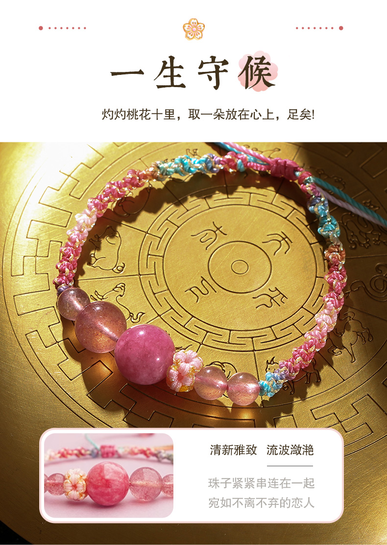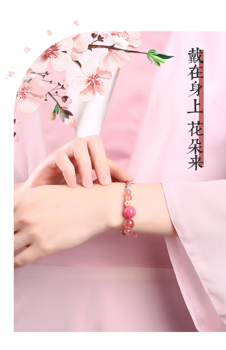 灵机吉品 桃你欢心草莓晶红纹玉髓手链粉红色桃花手绳女生闺蜜礼物编织