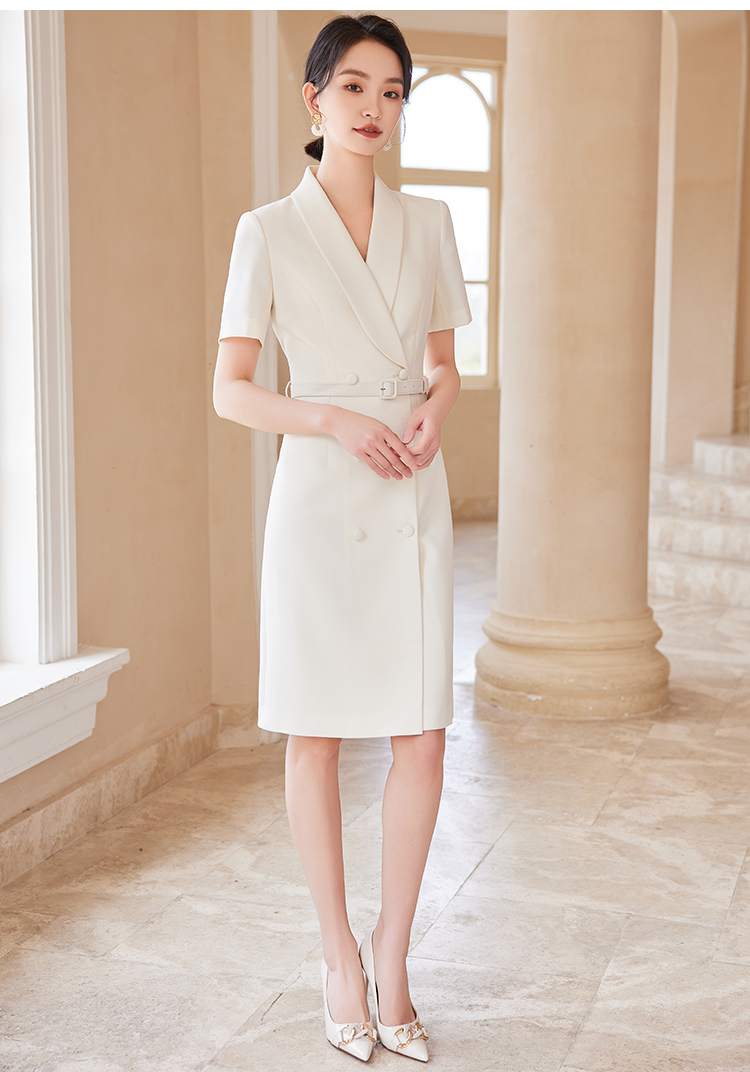 白色职业连衣裙女2024夏季修身显瘦高级感面试正式场合短袖西装裙