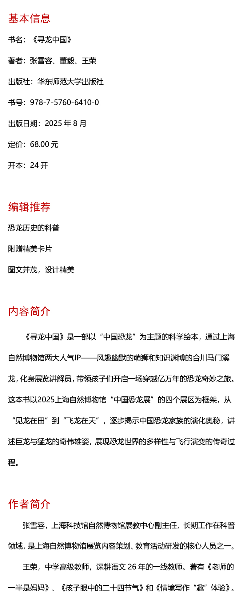 寻龙中国 附赠精美卡片 恐龙历史科普绘本 上海自然博物馆中国恐龙展
