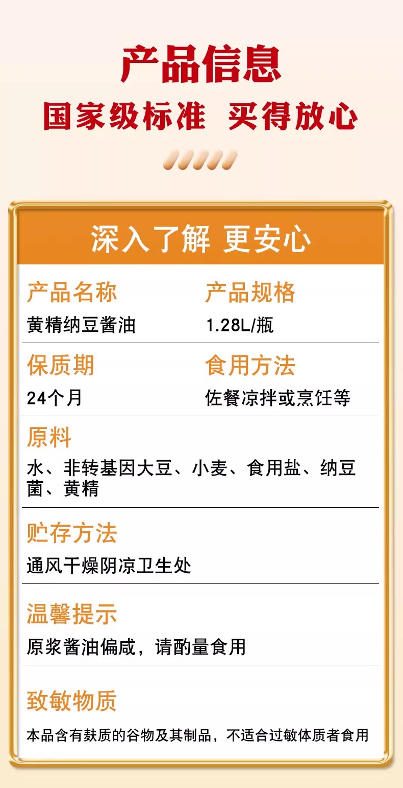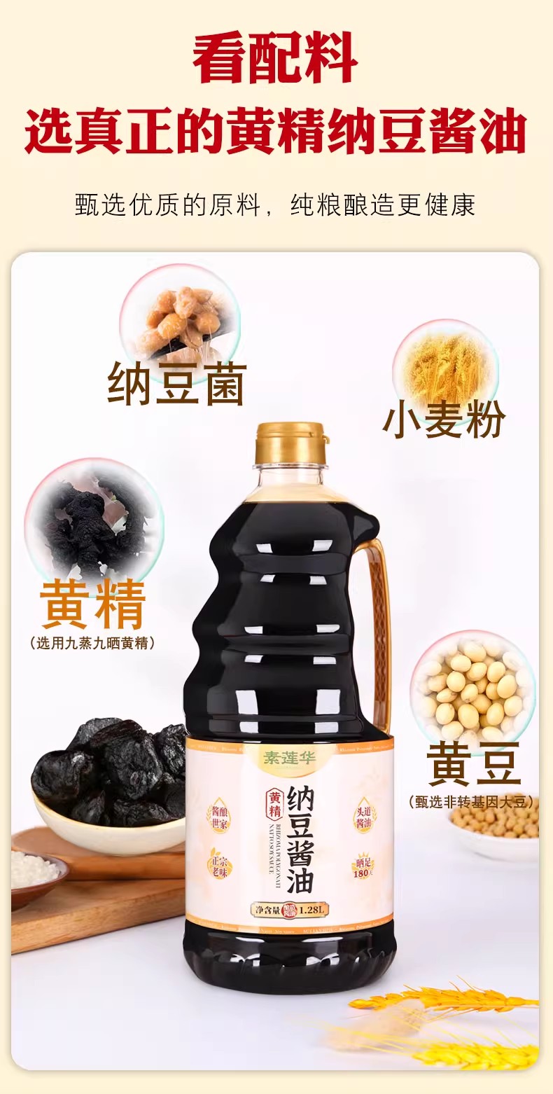 黄精纳豆酱油1.28L 素莲华头道特级酱油古法酿造