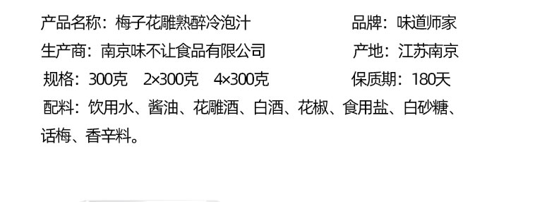 味道师家出品梅子花雕熟醉冷泡汁小海鲜捞汁腌网红酱汁升级版配方