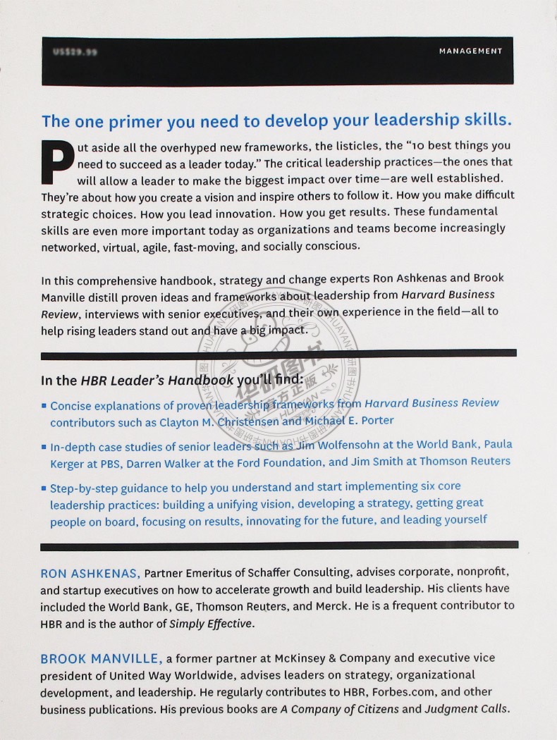 书名:The Harvard Business Review Leader's Handbook哈佛商业评论领导者手册