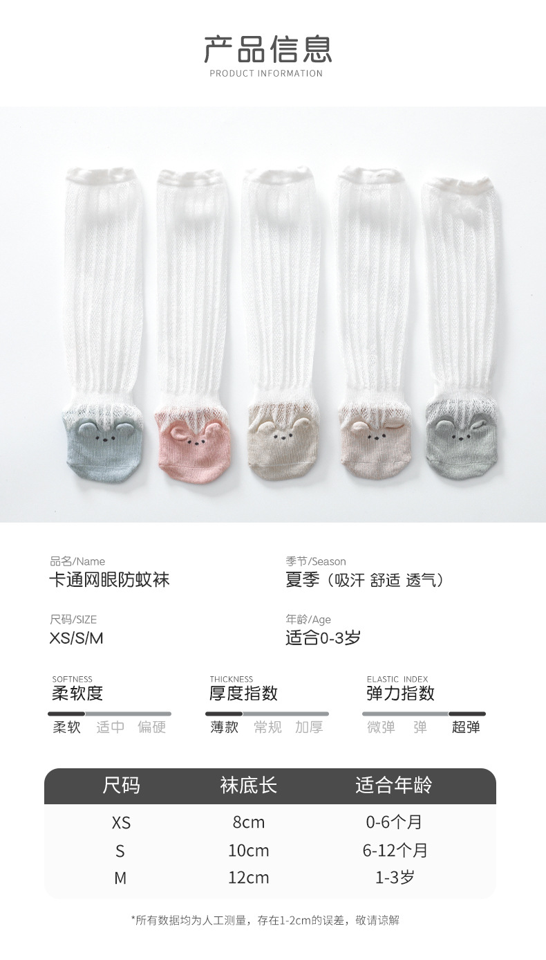 【2双装 卡通网眼防蚊袜 亲肤舒适透气】婴儿袜子夏季网眼薄款防蚊袜新生儿袜子婴儿长筒袜宝宝卡通儿童