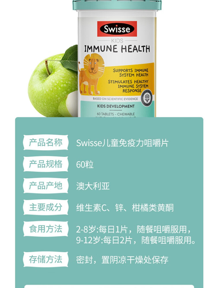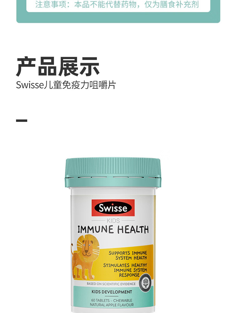 【保税仓】澳洲Swisse斯维诗儿童免疫咀嚼片60片