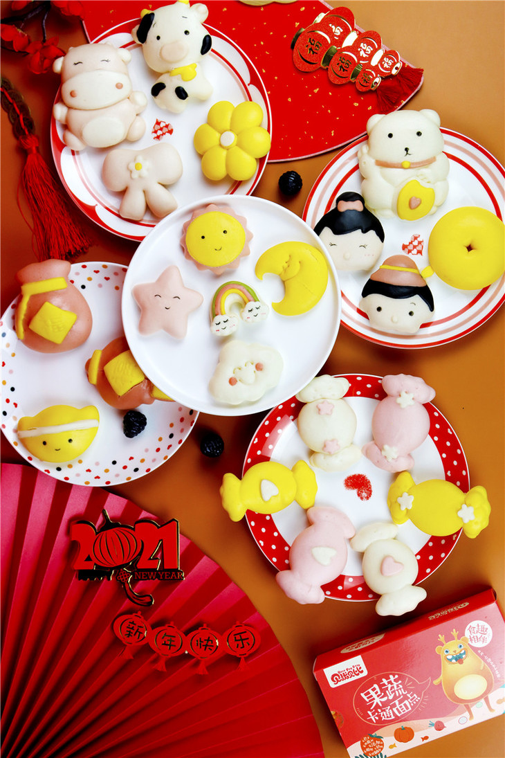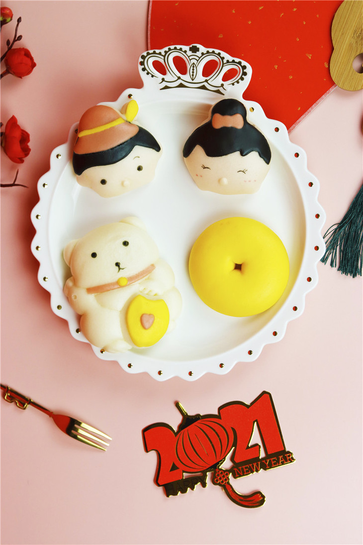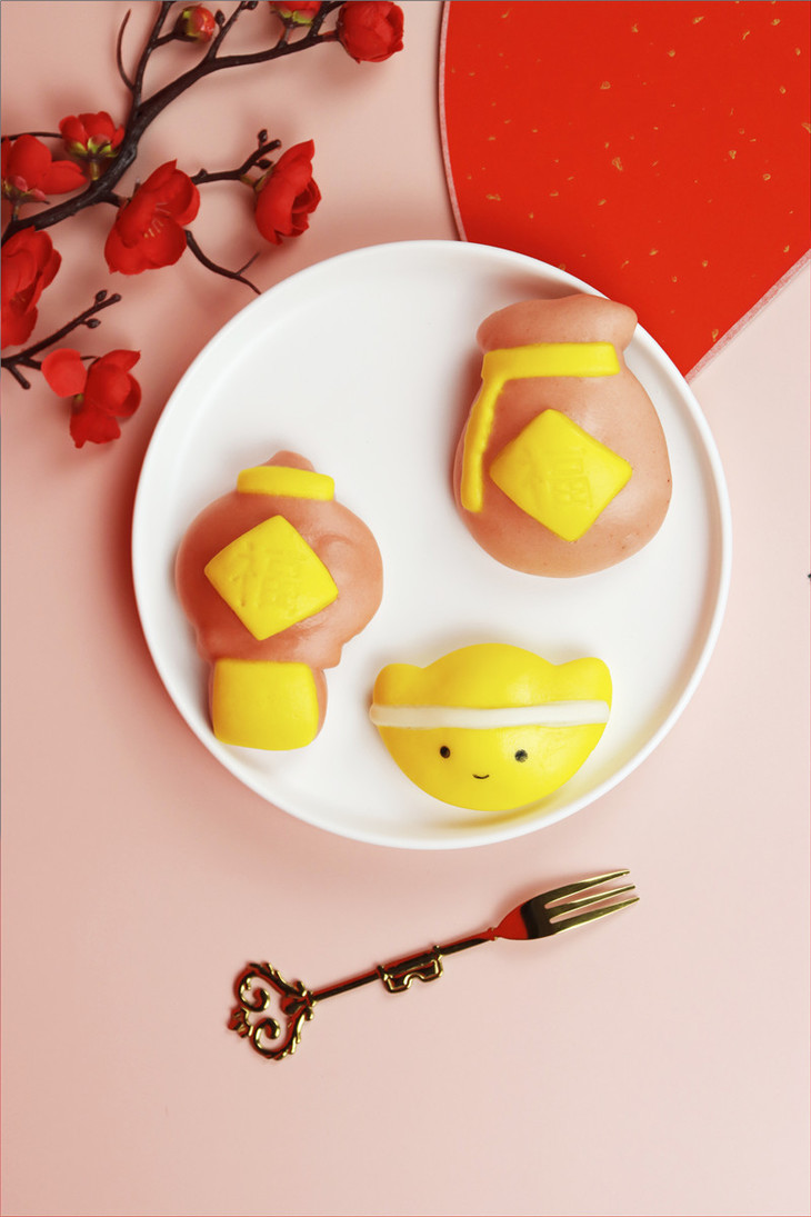 礼盒3(3只):福袋(低糖黑芝麻馅)、灯笼(低糖红豆沙馅)、元宝(浓浓奶黄馅)