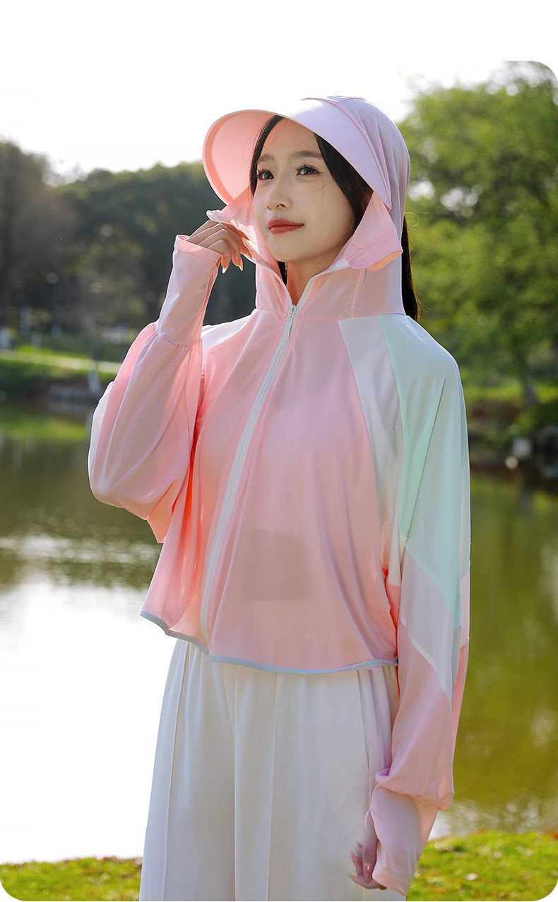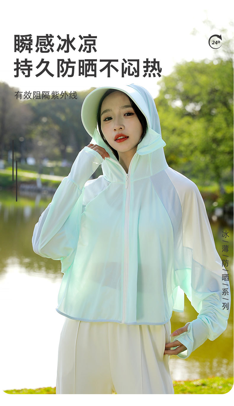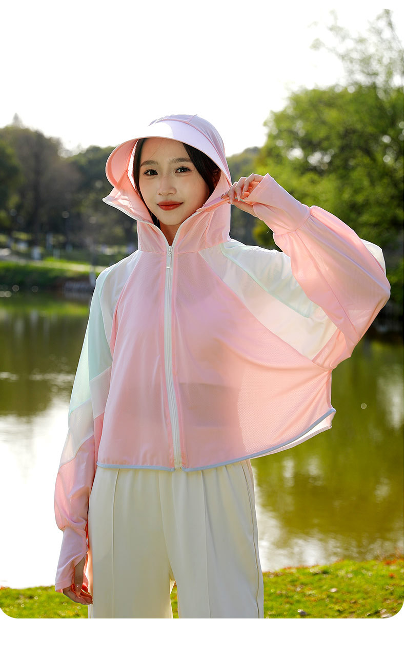【轻薄透气!冷感防晒衣】气质时尚百搭,拼接防晒冰丝防紫外线防晒衣女,骑车防晒服