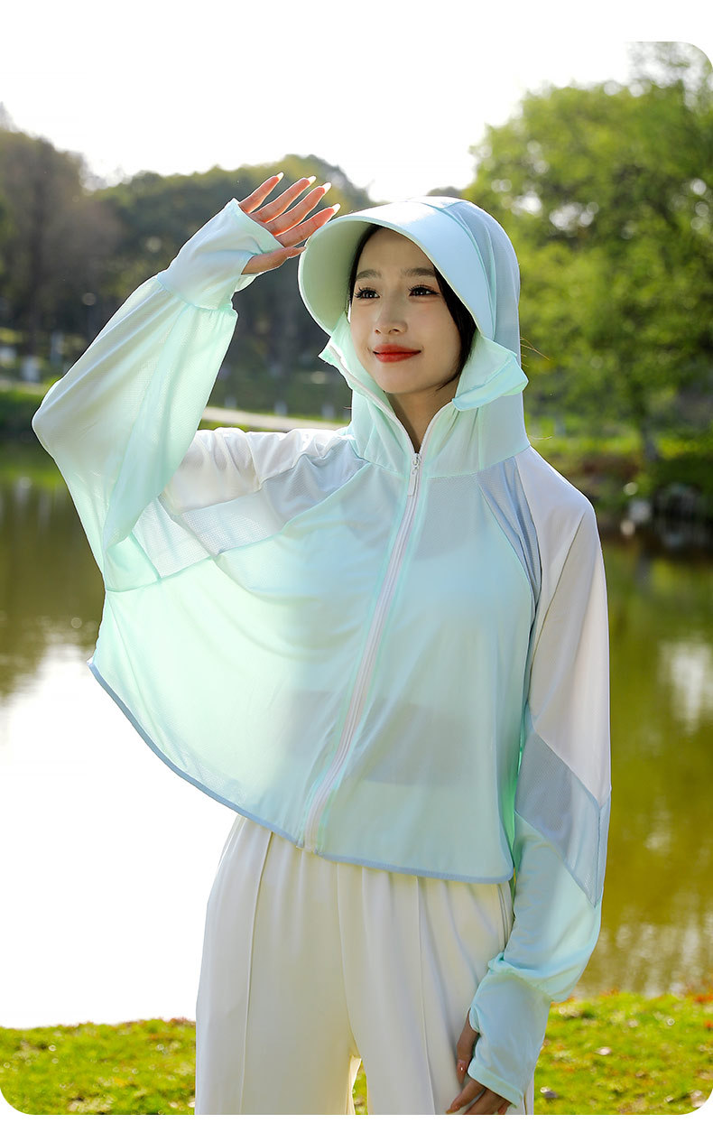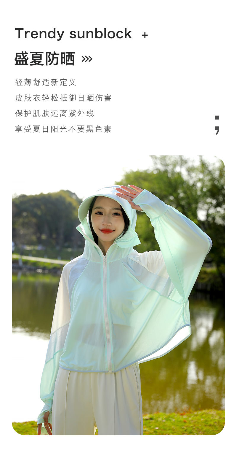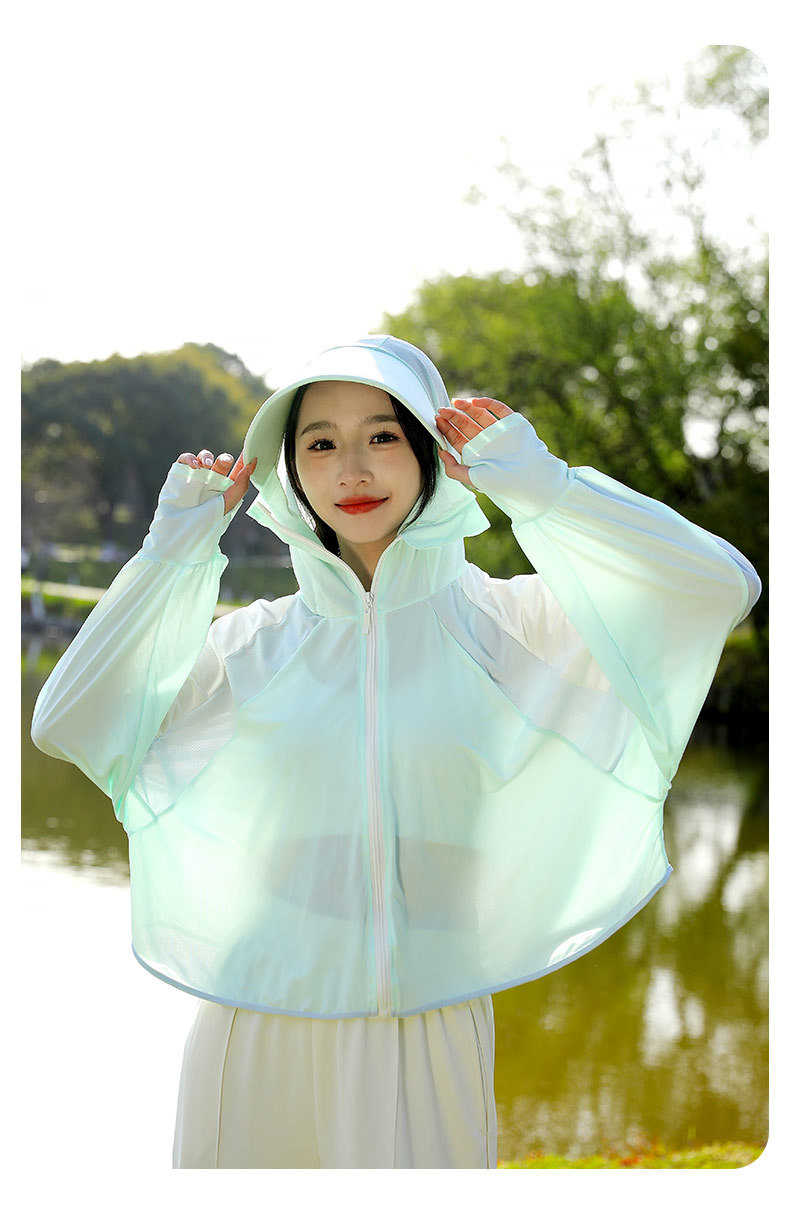 【轻薄透气!冷感防晒衣】气质时尚百搭,拼接防晒冰丝防紫外线防晒衣女,骑车防晒服