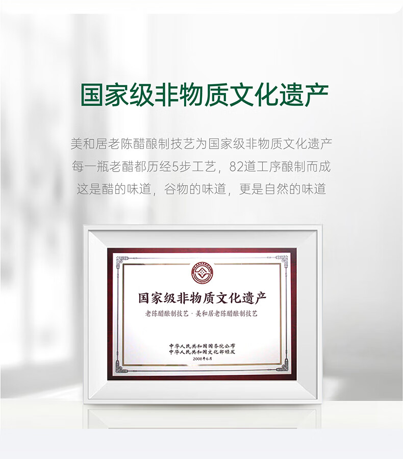- 美和居始创于1368年,为山西老陈醋开创者,国家级非物质文化遗产酿制技艺,国家地理标志保护产品!