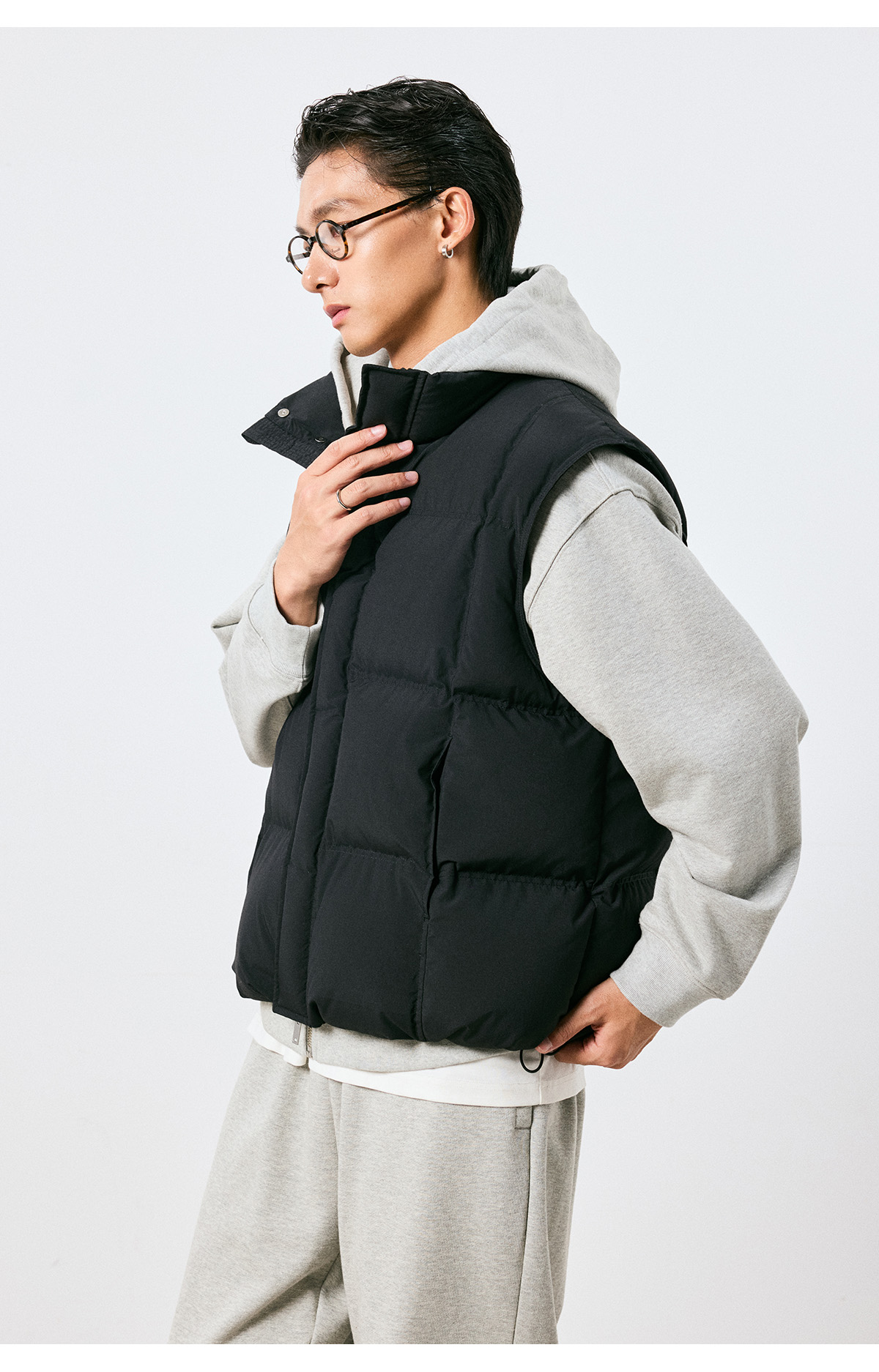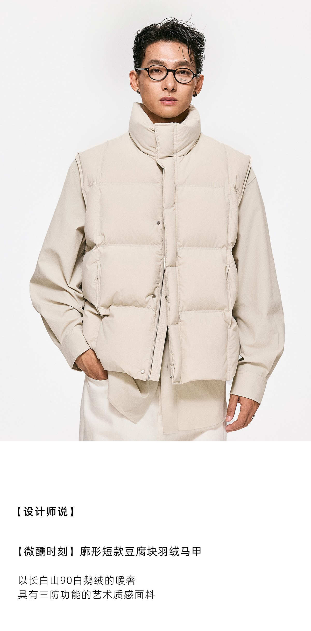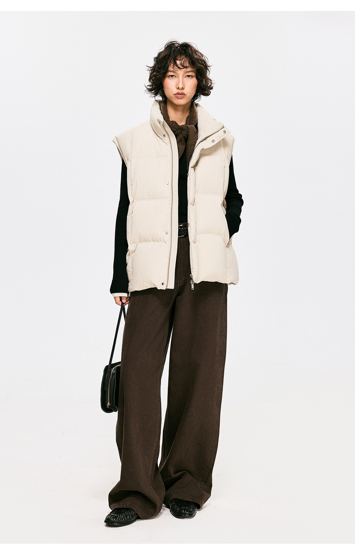 棉仓3671015004-【微醺时刻】廓形短款立领豆腐块羽绒马甲