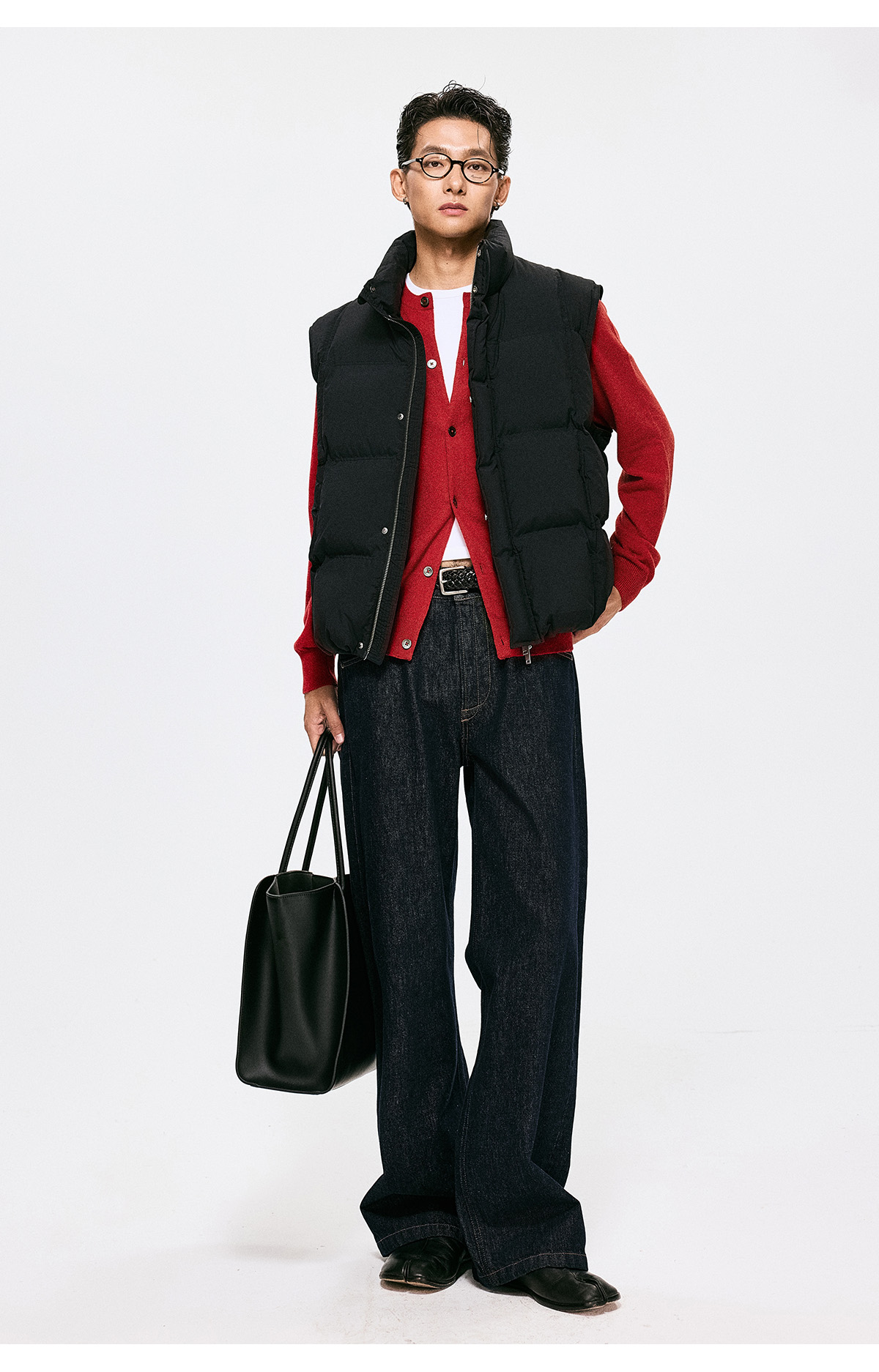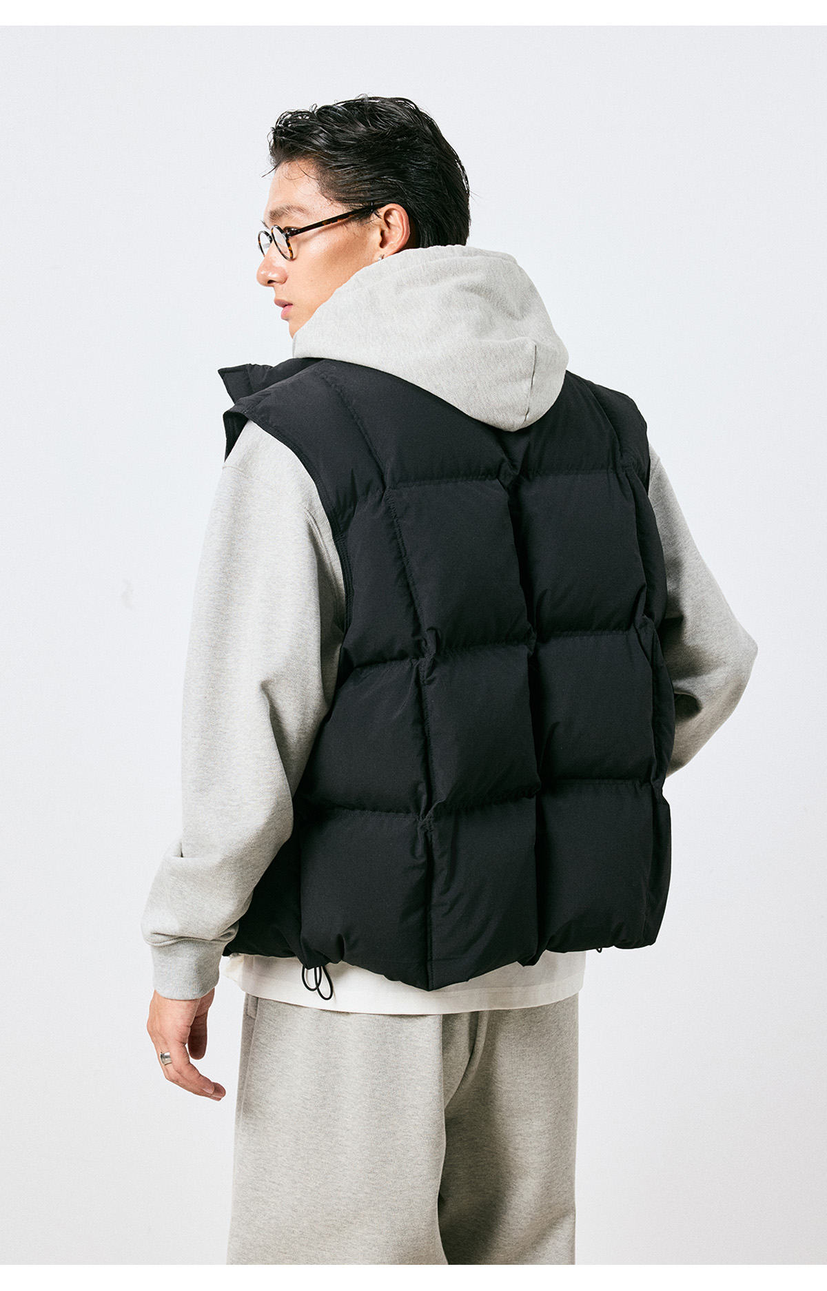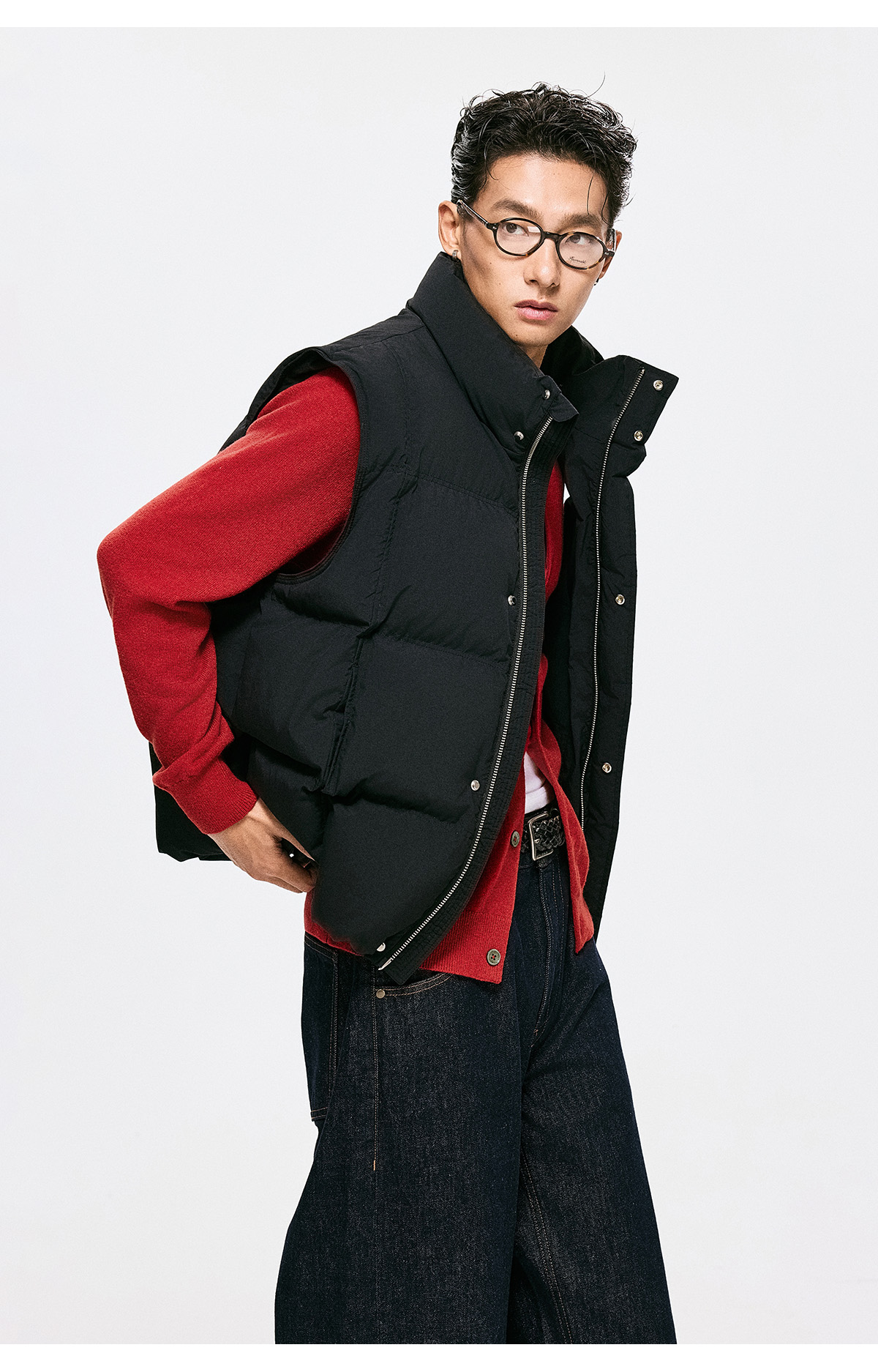 棉仓3671015004-【微醺时刻】廓形短款立领豆腐块羽绒马甲