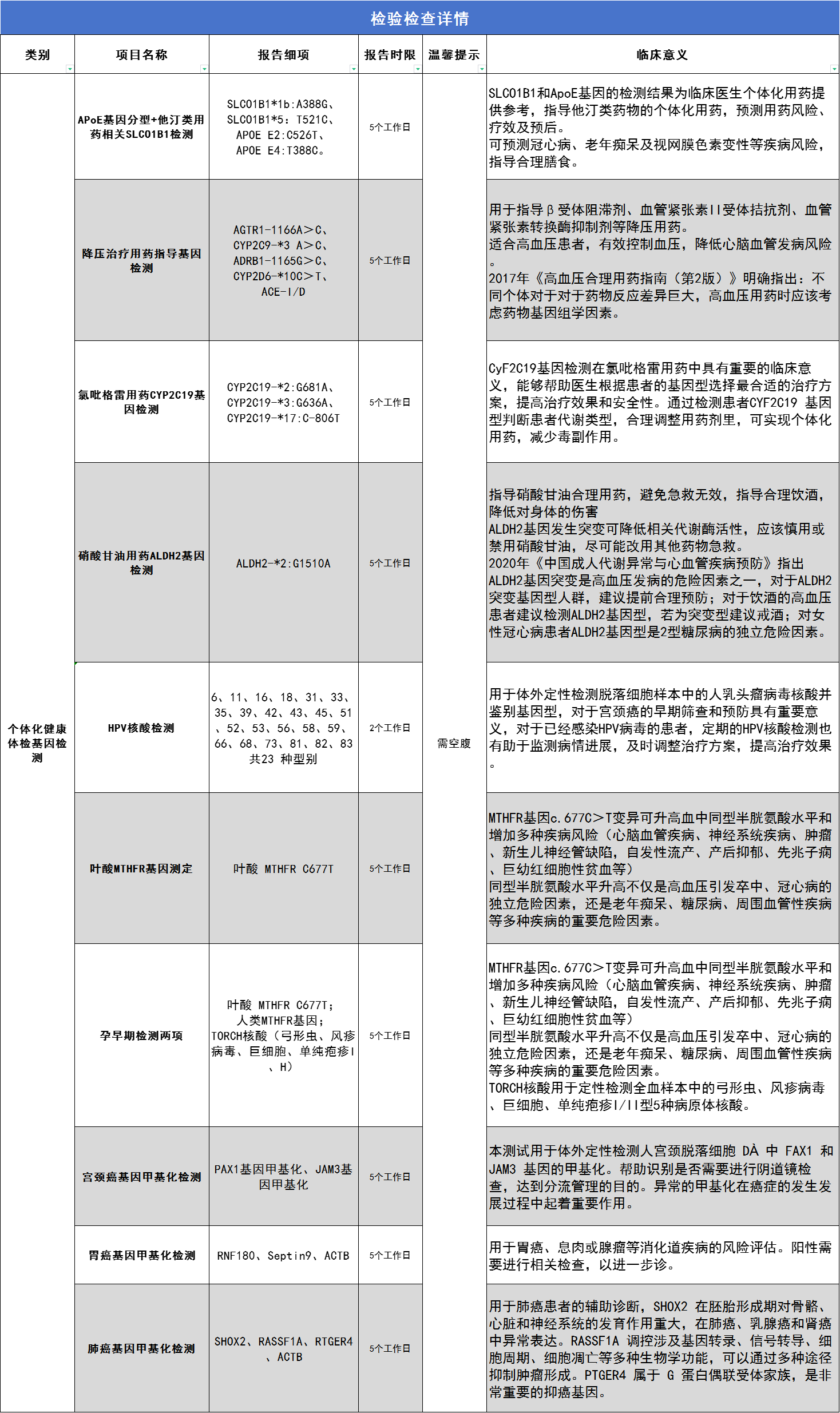 个体化健康体检基因检测 (仅限自费人群)