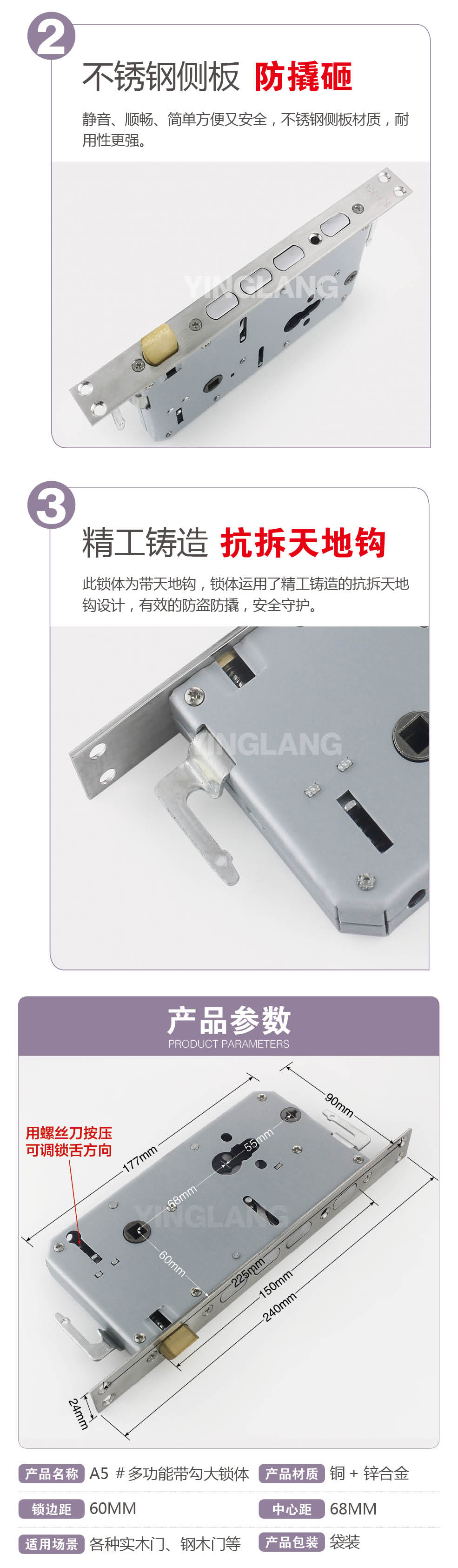 〖B051〗9024半钢铜舌机械1档无勾方锁体
