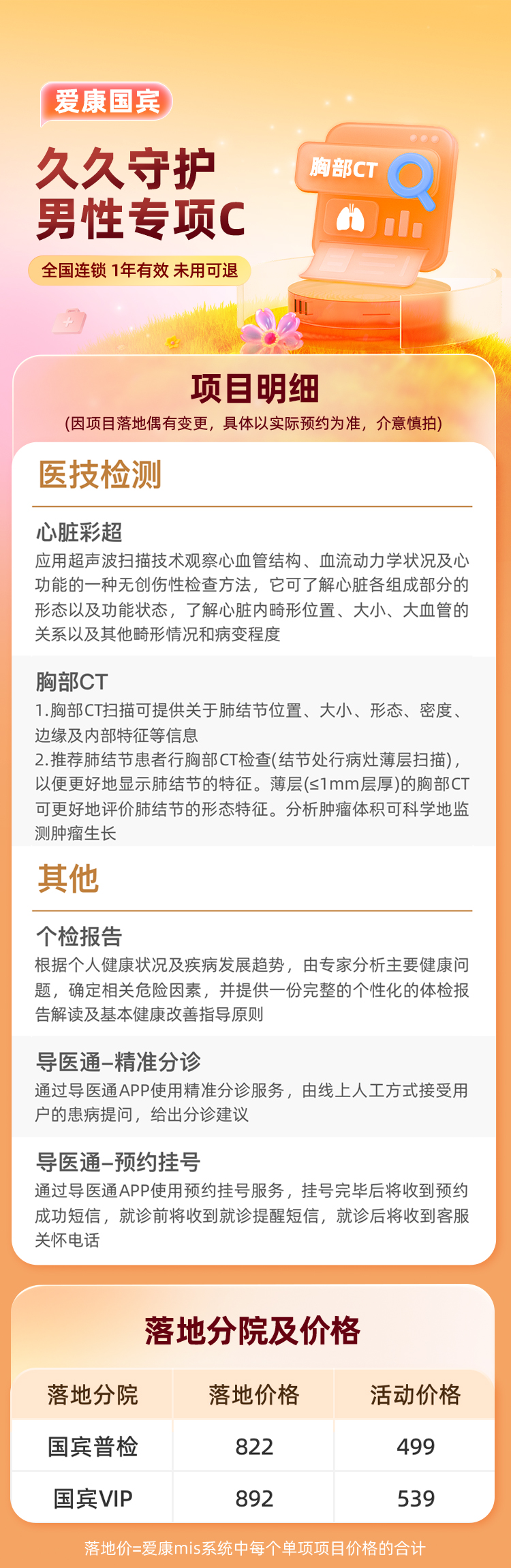 【含胸部CT+心脏彩超】爱康 久久守护男性专项C