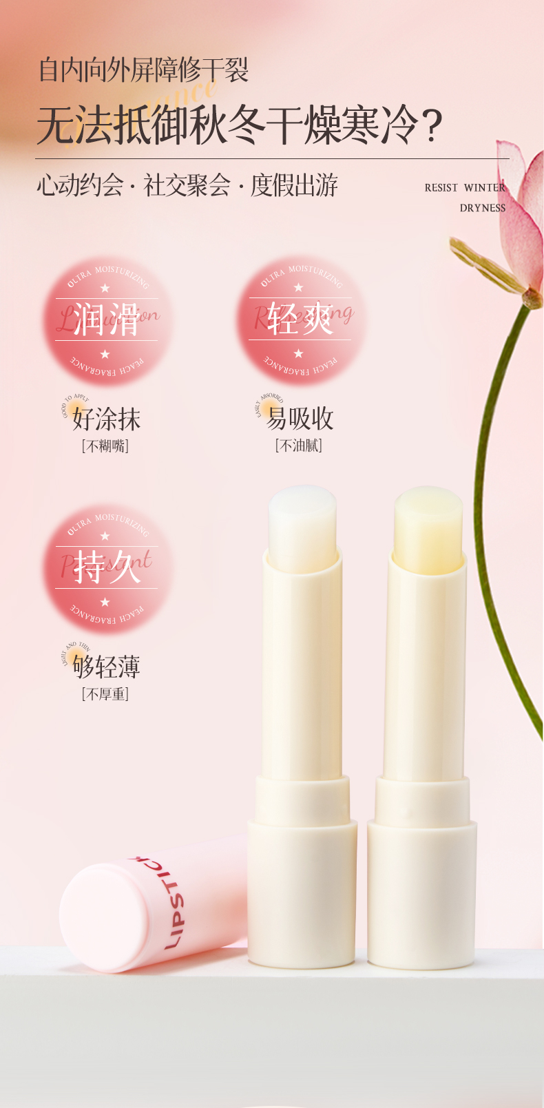 【VIP-G】芭思蔻 盈润保湿护唇膏 3g (月下金桂)(白桃乌龙)