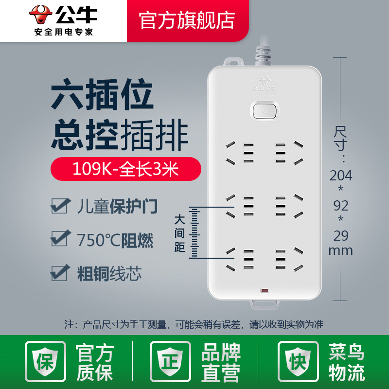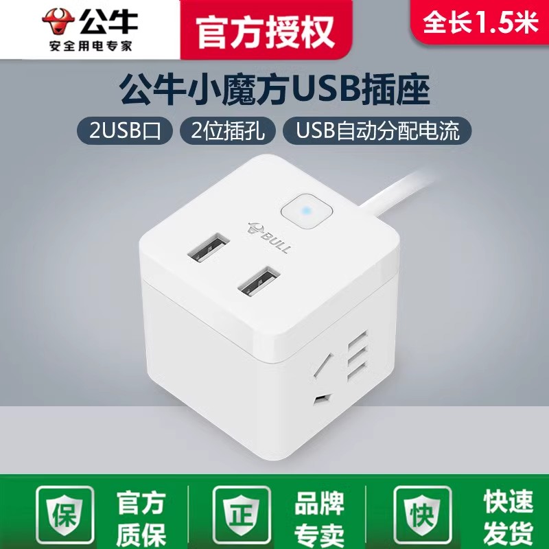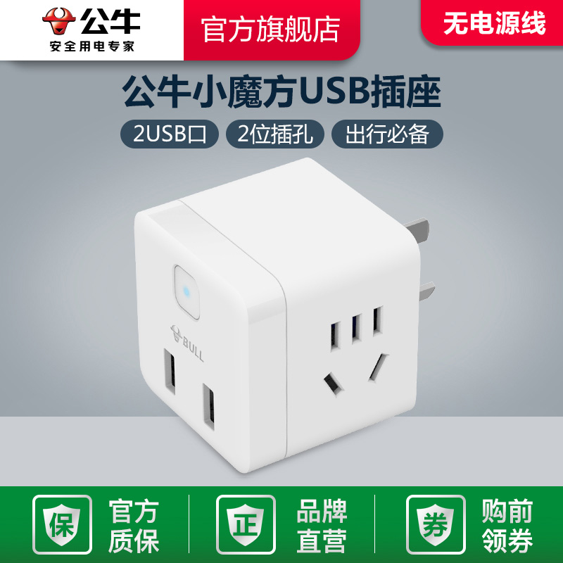 公牛插线板插座转换插插排GN-UUA122双USB多插孔