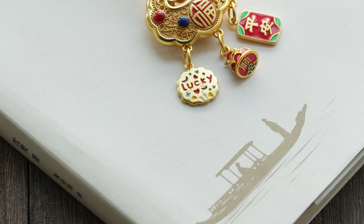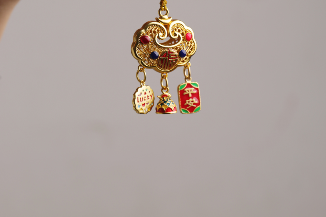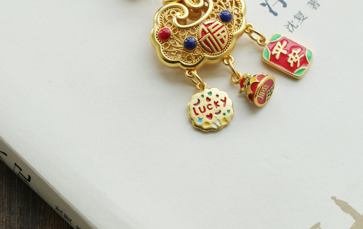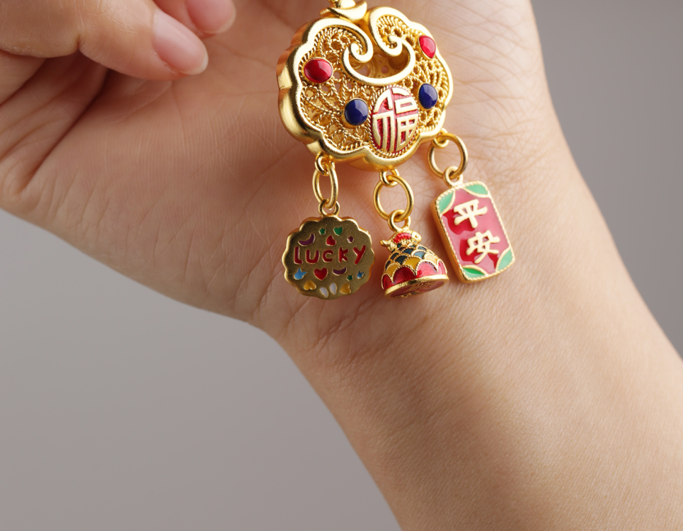 个性创意沙金如意锁钥匙扣汽车钥匙挂件男女款式招财保平安挂件