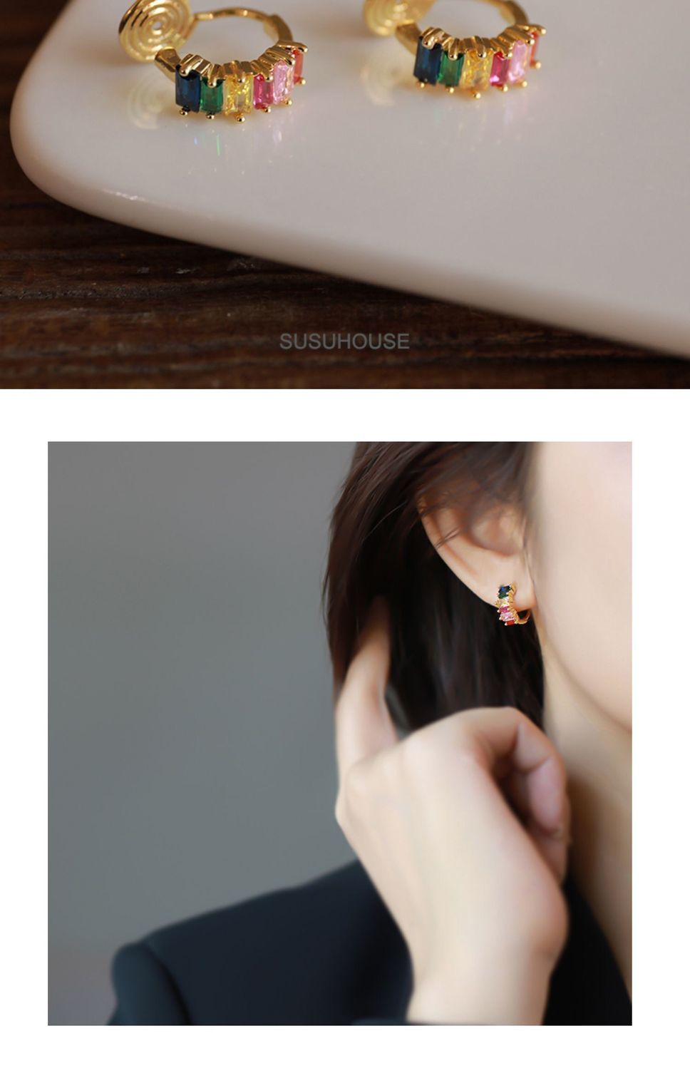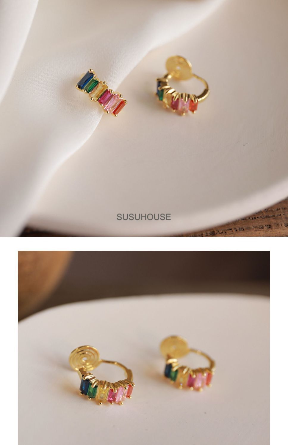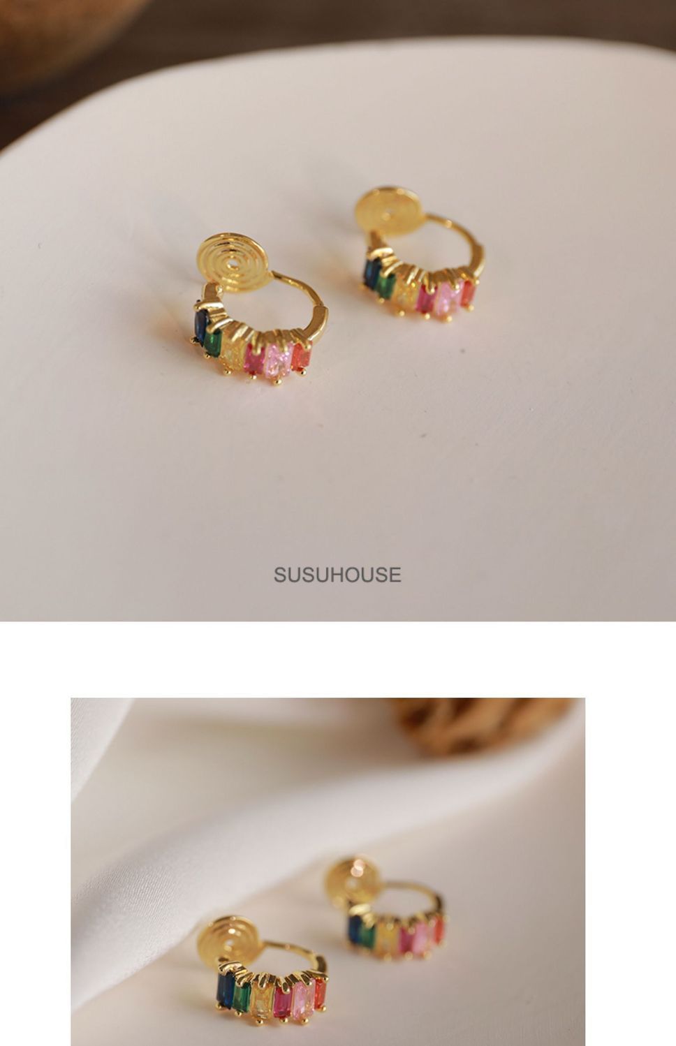 彩色锆石蚊香盘耳夹无耳洞女耳圈撞色耳环圆圈小巧无痛耳饰