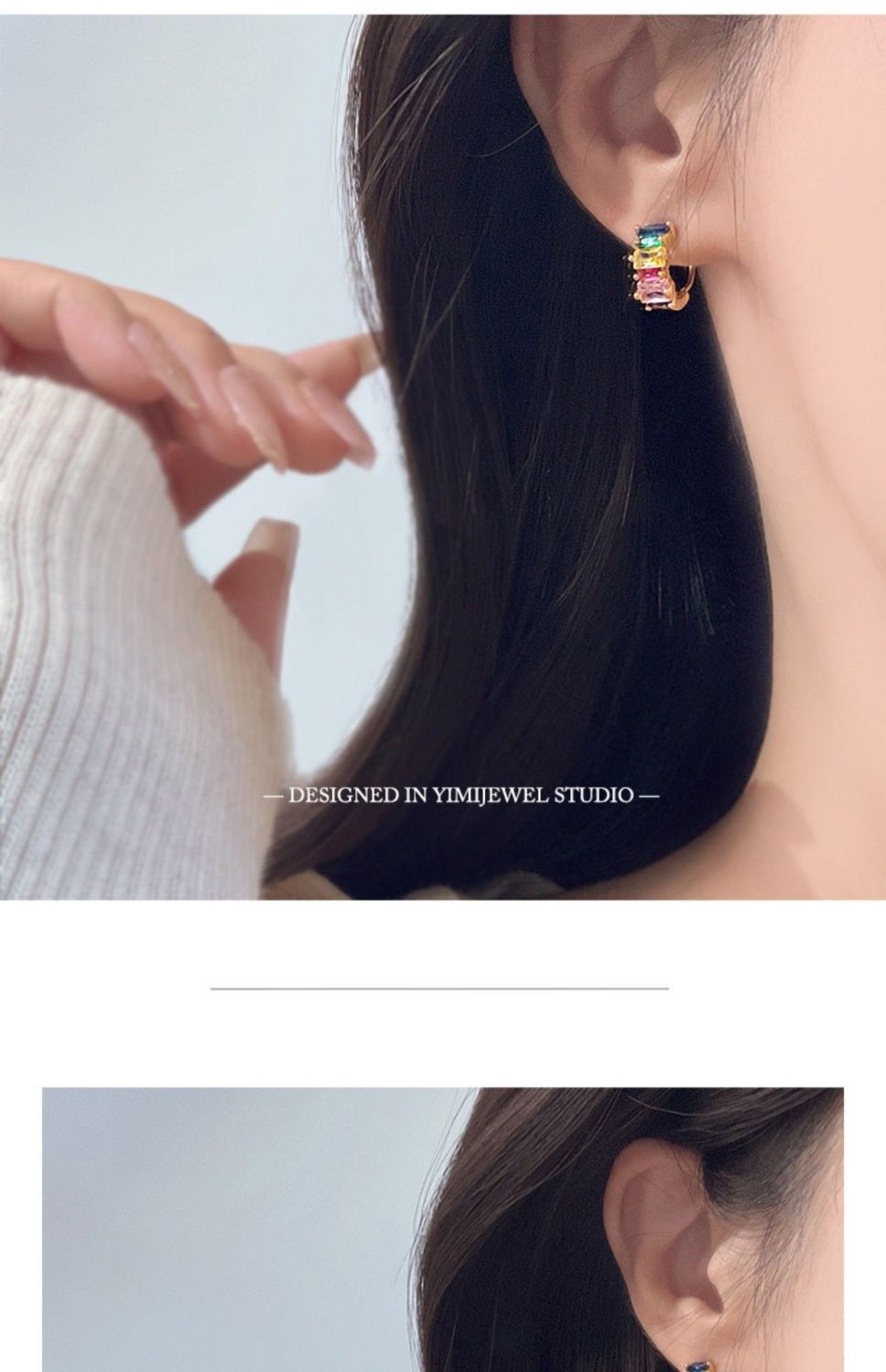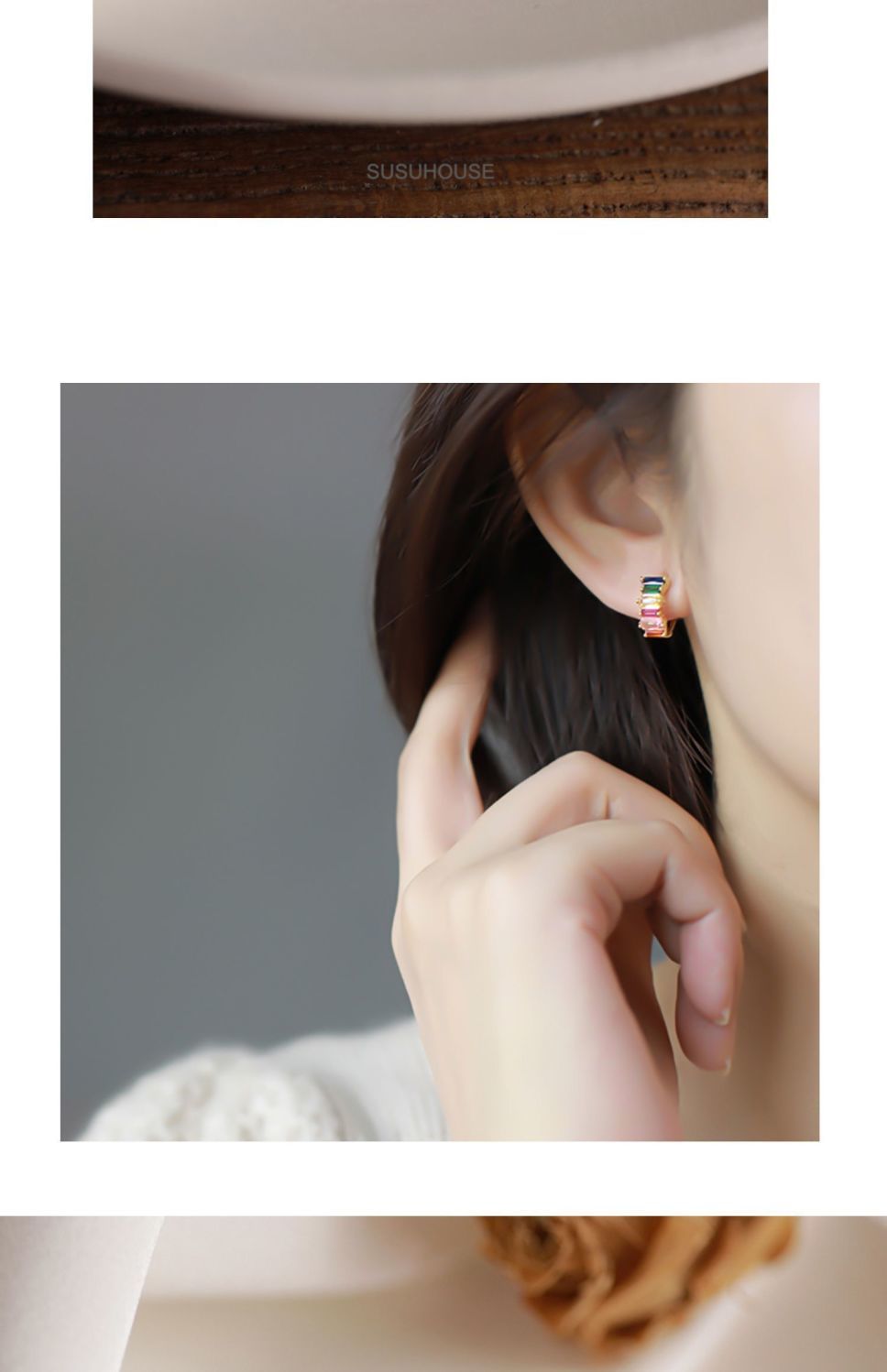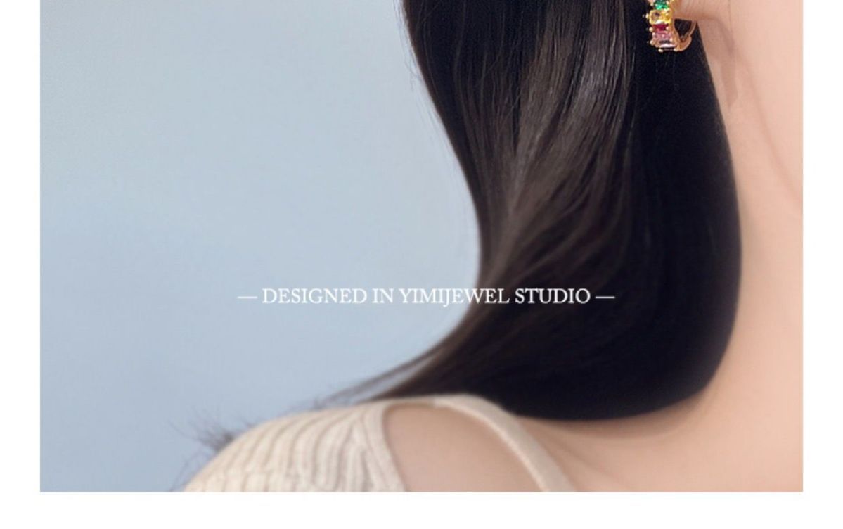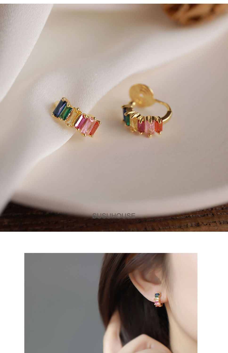 彩色锆石蚊香盘耳夹无耳洞女耳圈撞色耳环圆圈小巧无痛耳饰