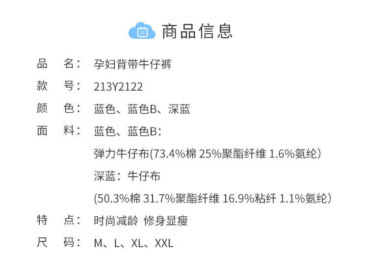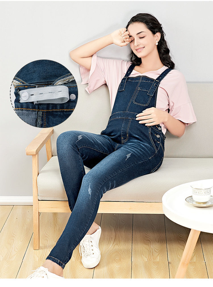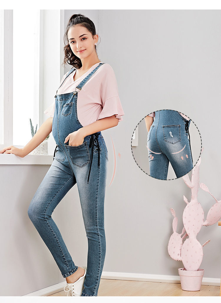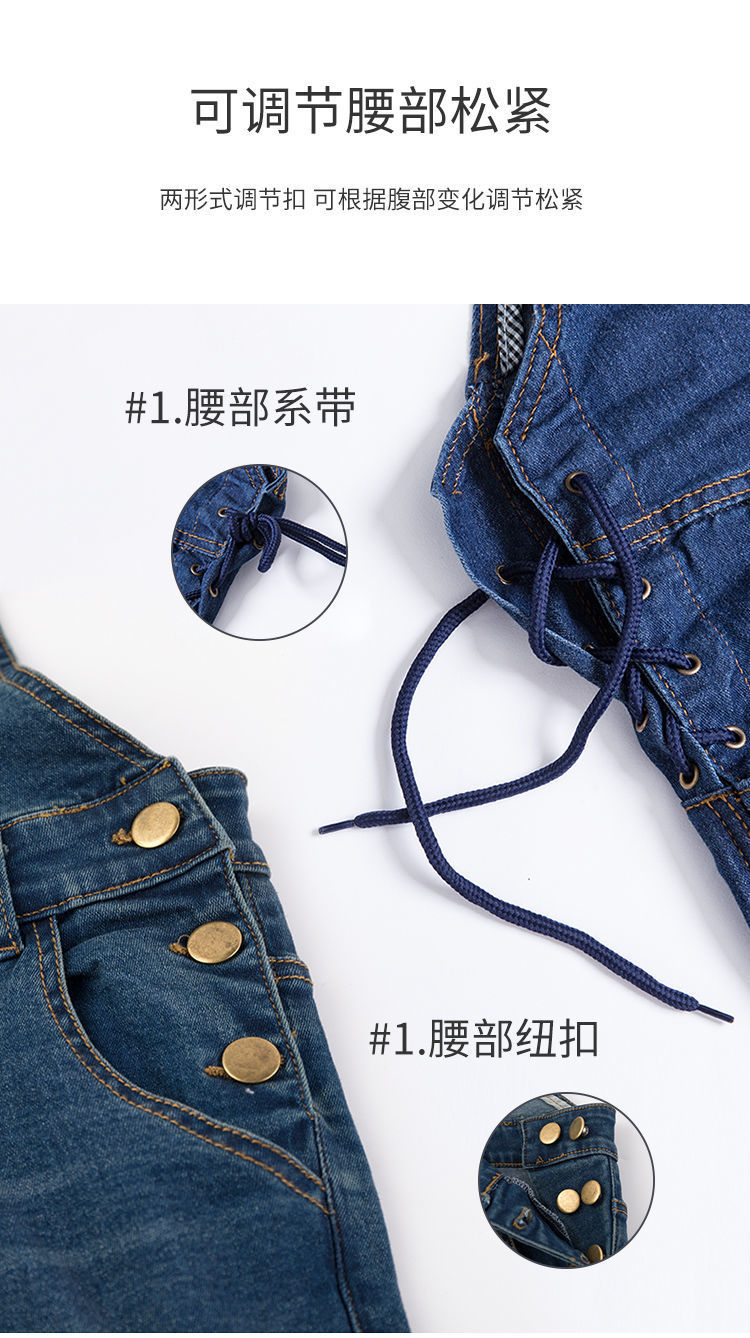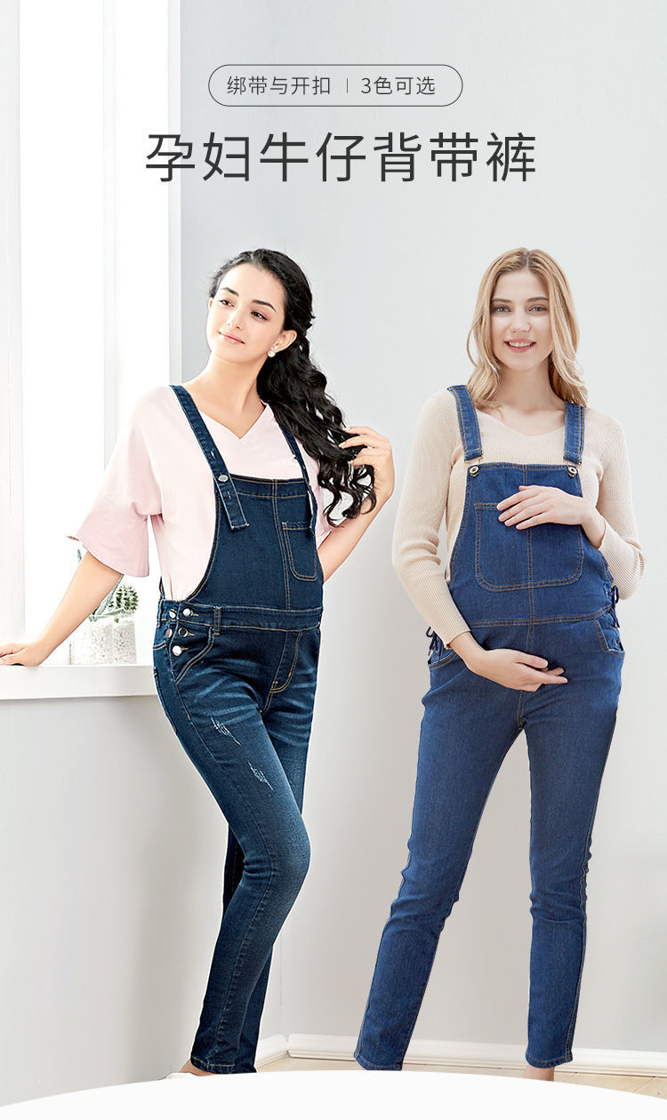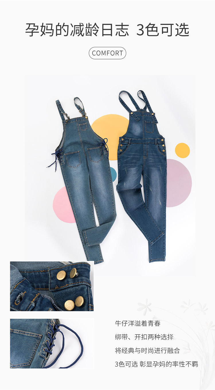 贝贝怡孕妇裤牛仔背带裤秋季新款时尚长裤显瘦网红宽松连体裤子