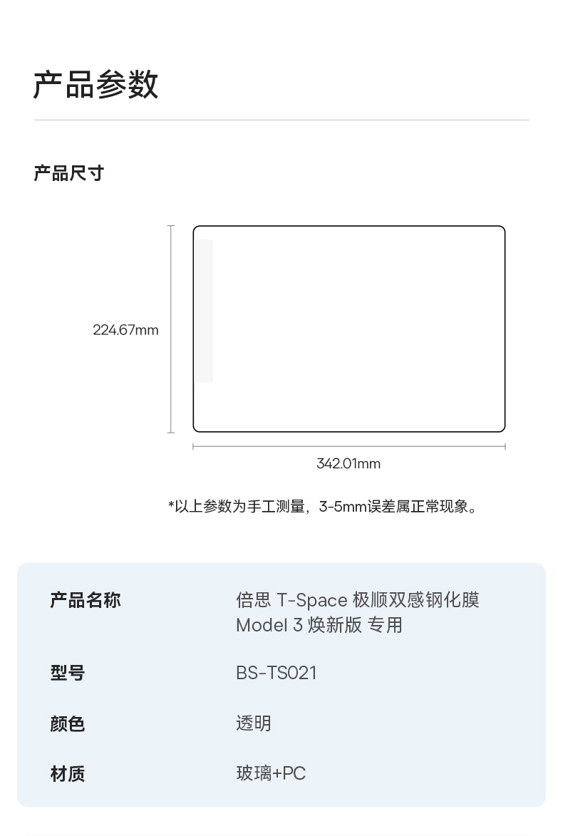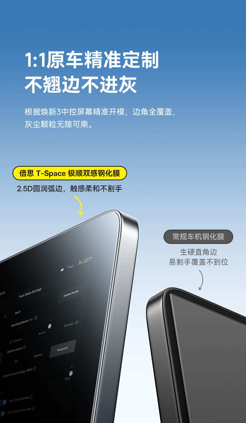 倍思 T-Space 极顺双感钢化膜 Model 3 焕新版 专用