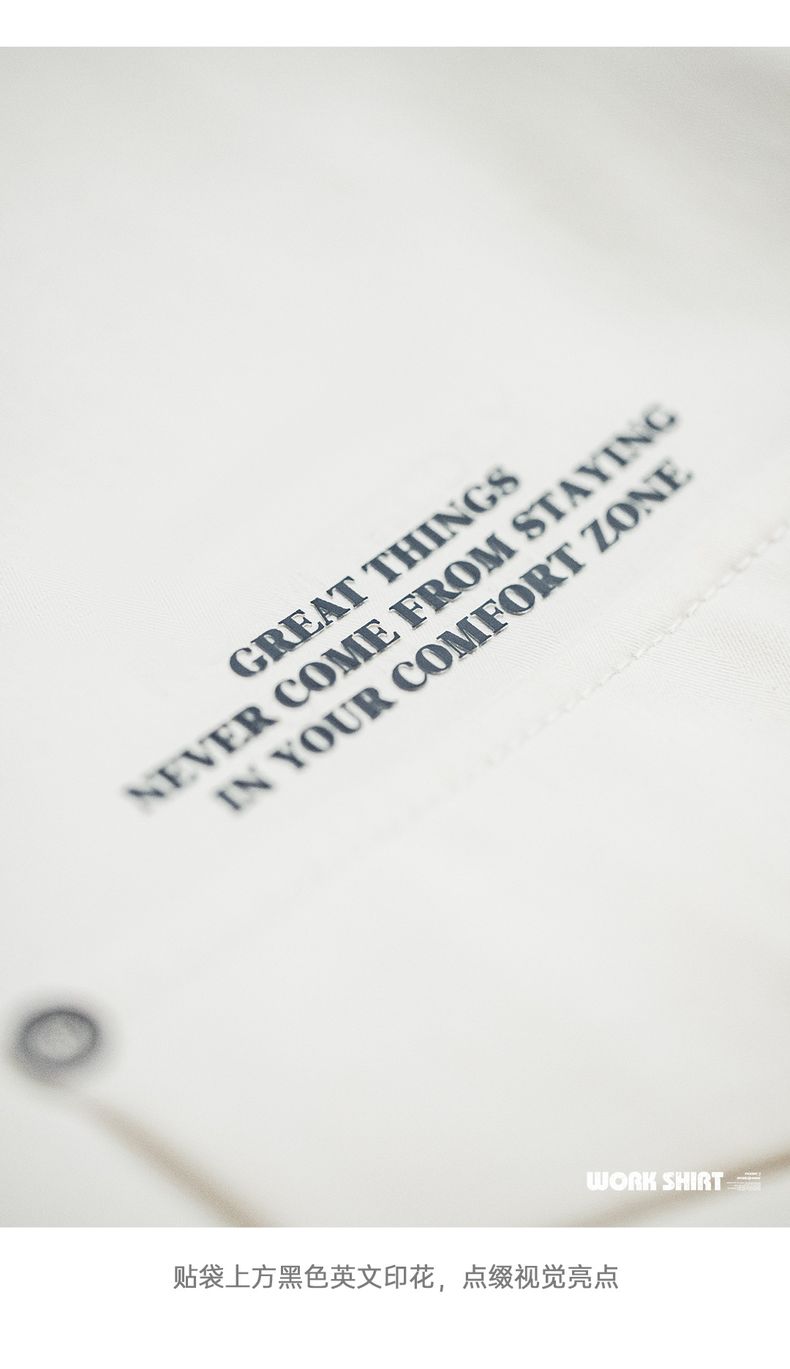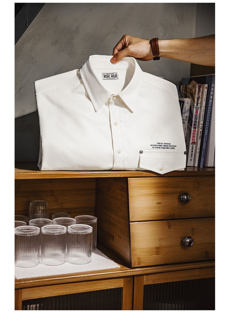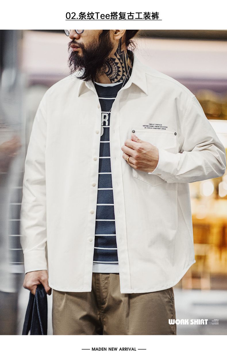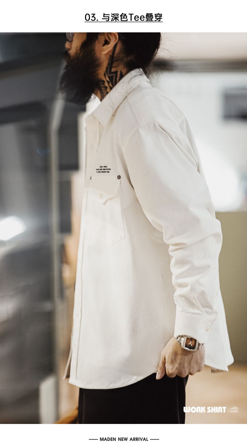 工装优选美式休闲人字纹廓形长袖衬衫印花叠穿翻领白色衬衣男秋冬